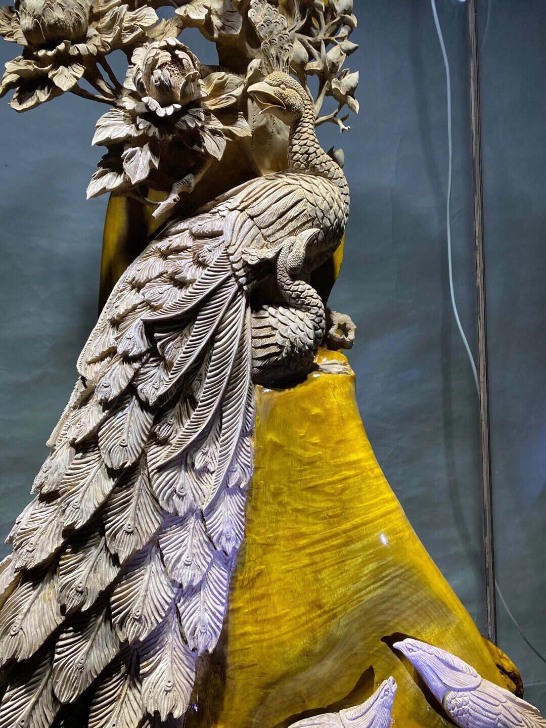 Root carving wood carving ornaments flowers blooming rich golden silk nan small leaves Zhennan with water ripples office gift home decoration