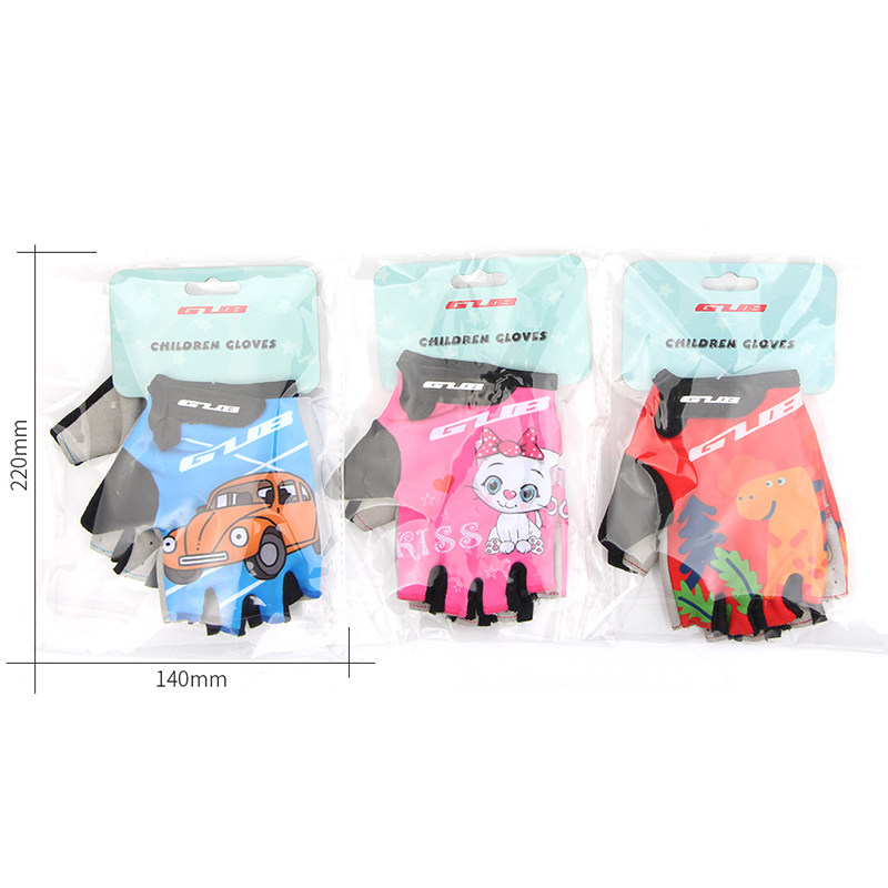 GUB S022 Children's semifinger gloves light green duckling S022 Children's semifinger gloves blue carts S022 Children's semifinger gloves pink cats S022 Children's semi-fingers