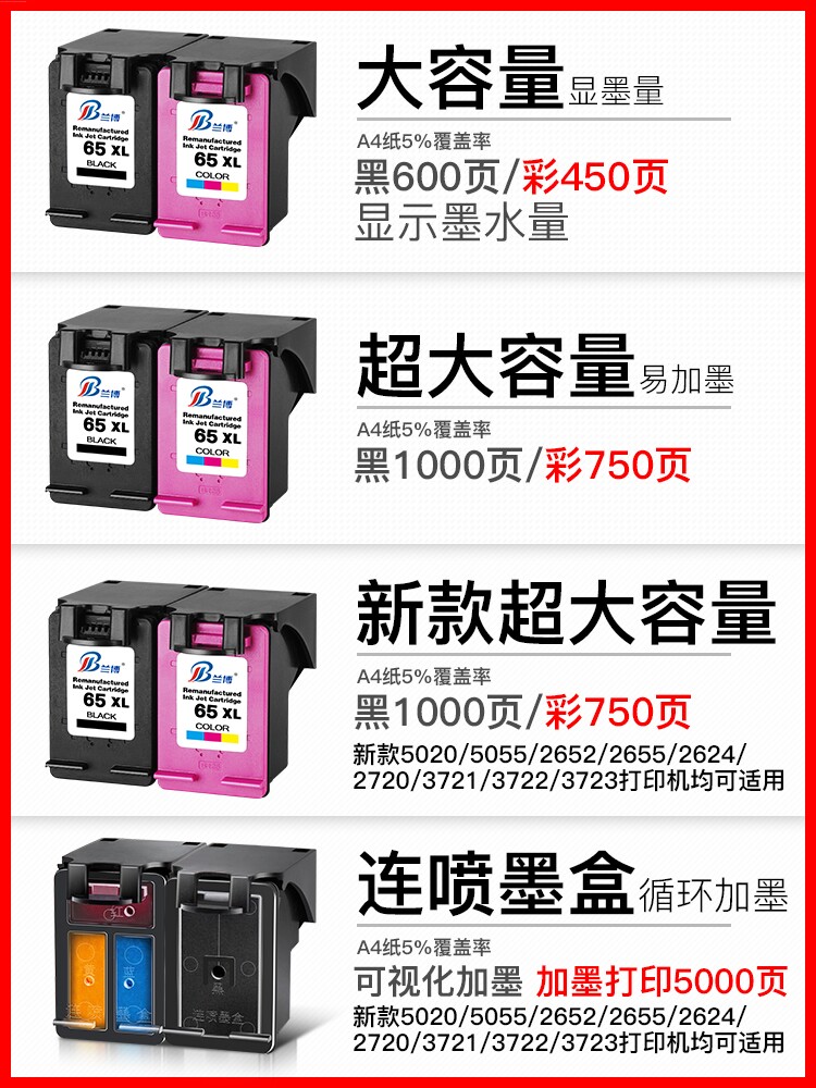 65 black large capacity ink (600 pages) send ink 65 black super large capacity ink ink ink package 65 color super large ink ink (750 pages) easy ink 65 black color color color large ink