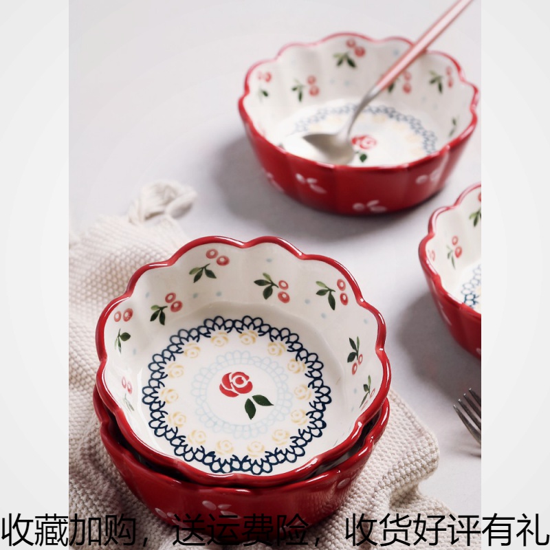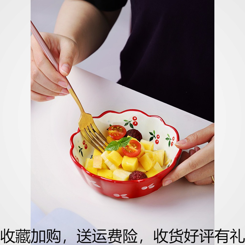 6-inch cherry small bowl (main picture section) collection of 6-inch retro cherry small bowl collection sent fruit spoon 4 5 inch cherry bowl collection to send fruit fork 3 only (send three fruit forks) collection