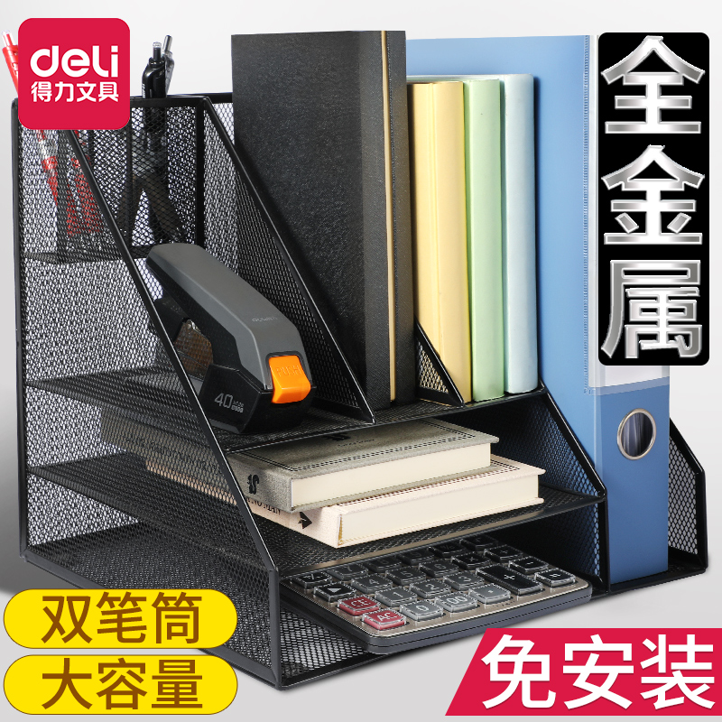 Deli all-metal iron mesh multi-layer folder file box storage box file shelf storage rack storage rack desktop information shelf office book stand file column file basket vertical file shelf