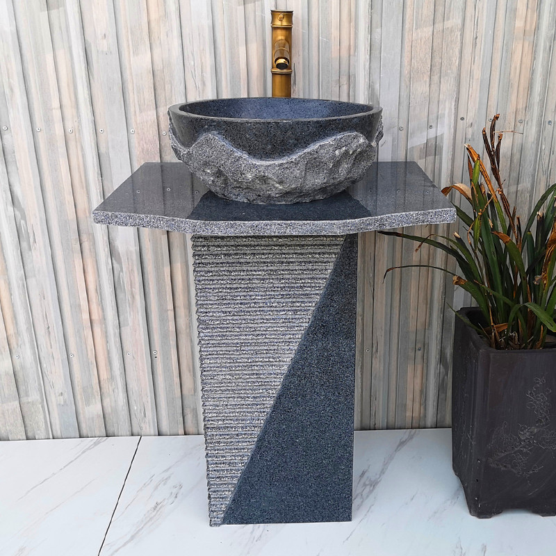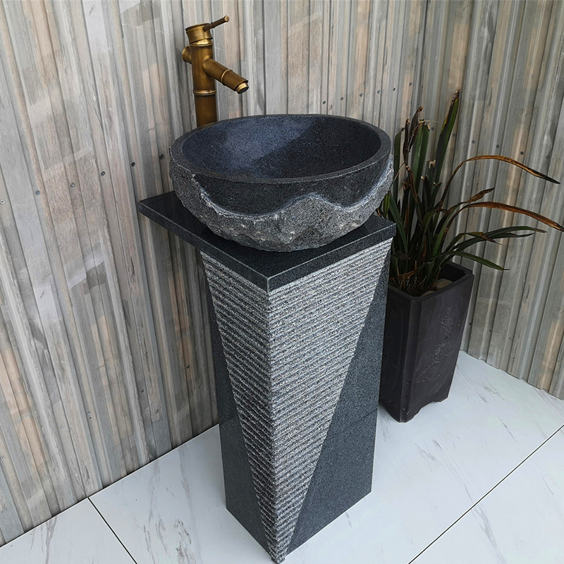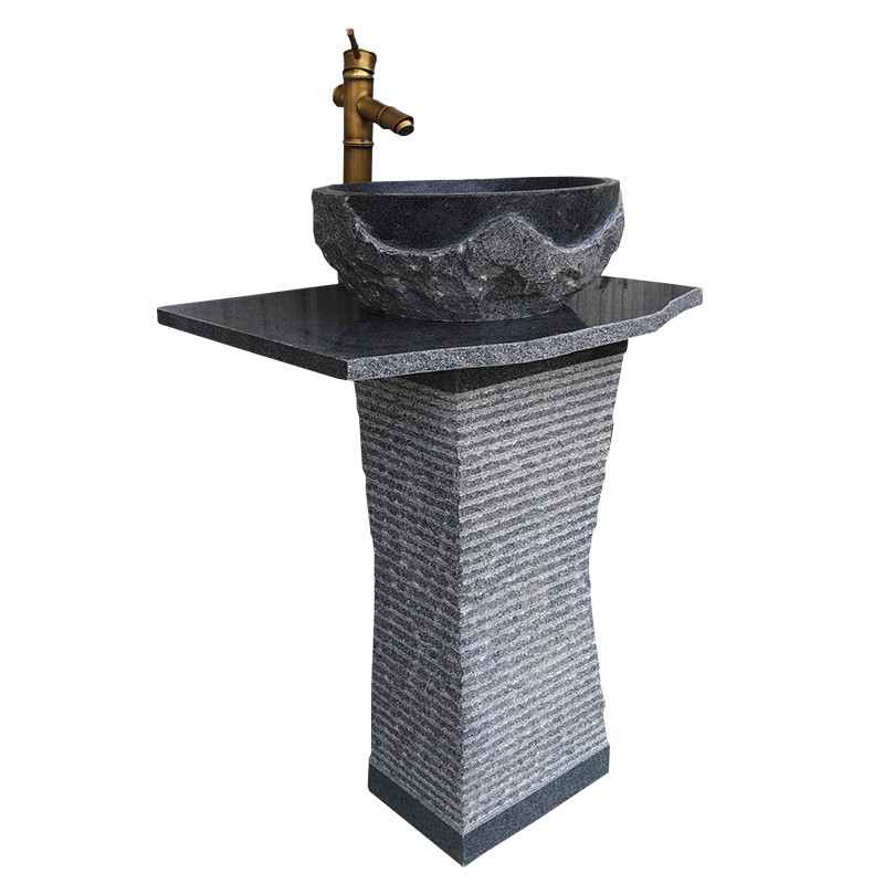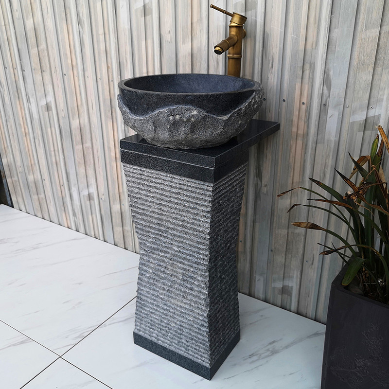 Balcony marble head column basin retro outdoor courtyard countertop basin villa stone column type plastic wash basin