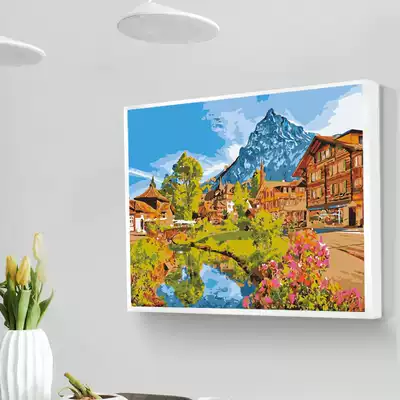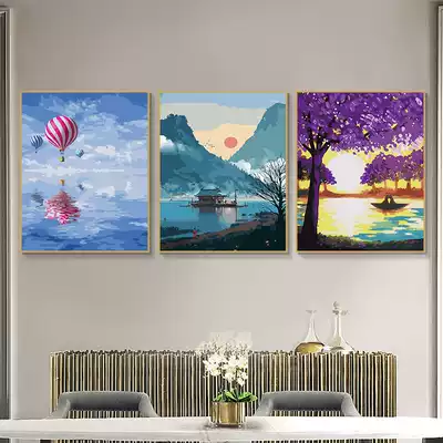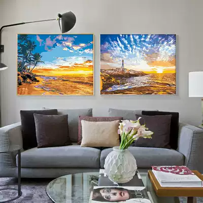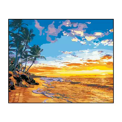 Digital oil painting diy Golden seaside landscape filling color painting living room decoration hanging painting hand painting painting color painting painting