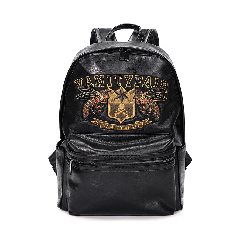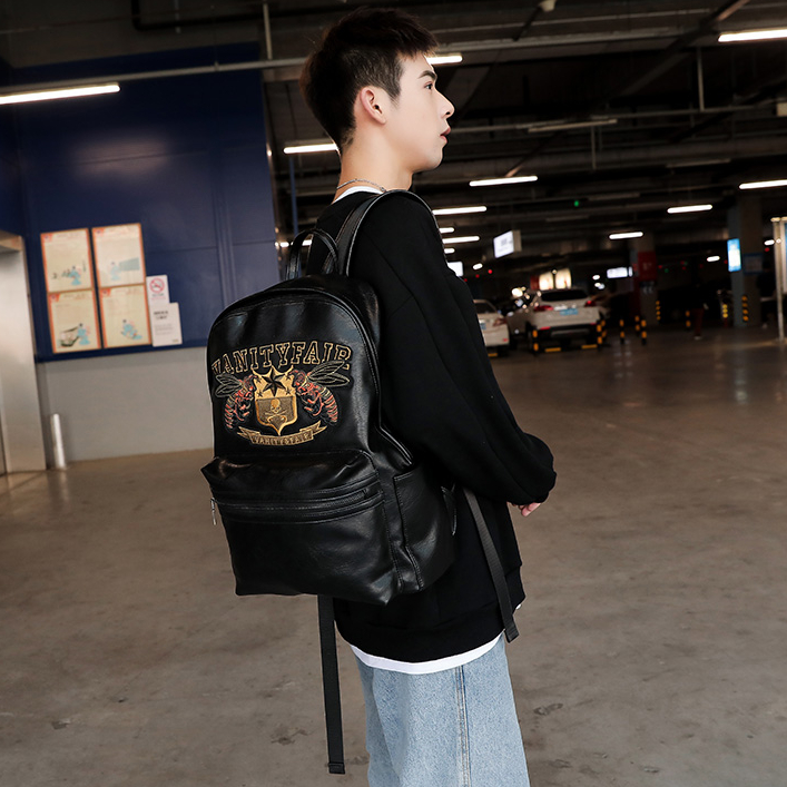 Hong Kong's new Korean version Genuine Leather Tide Man Bag Embroidered Fashion Double Shoulder Bag Travel Computer SHOULDER BAG STUDENT BAG