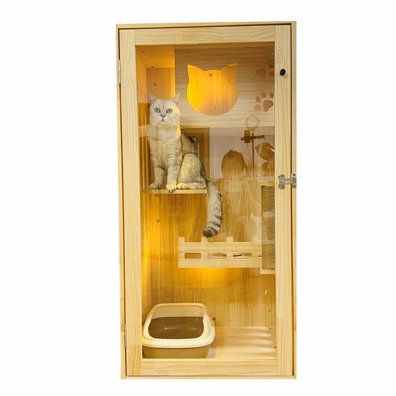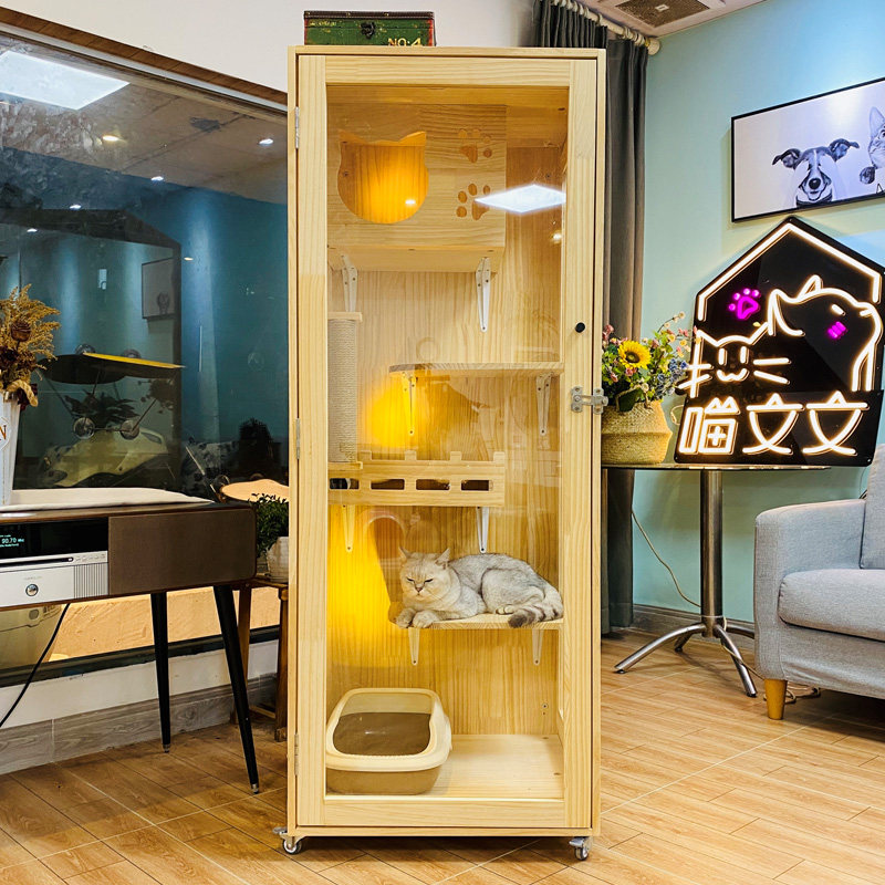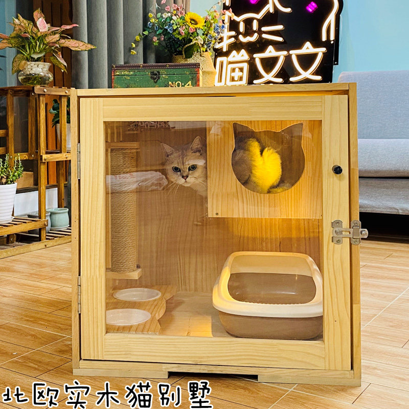 Cat villa Solid wood luxury cat cage Cat house Cat display cabinet Cat breeding cage Cat Coffee cat house Pet cage Cat bed