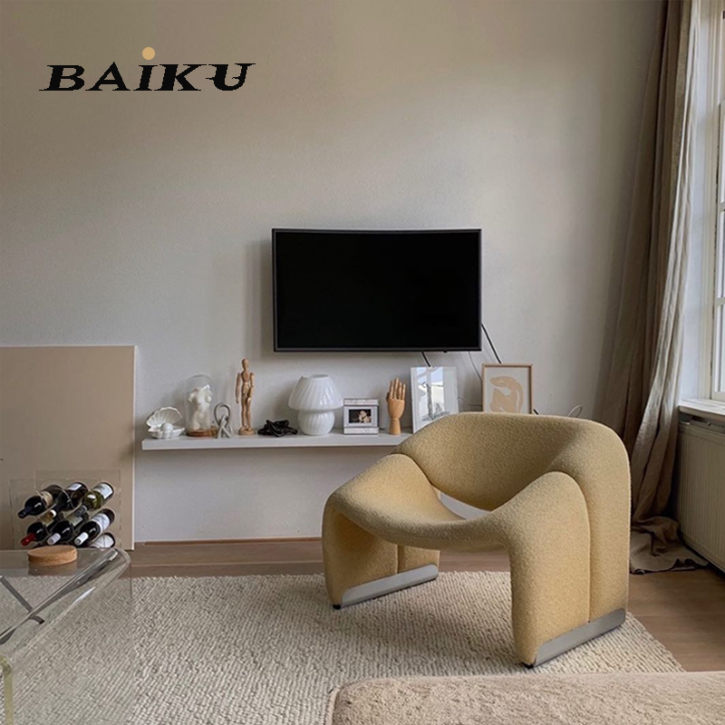 Fiberglass ribbon chair M-shaped chair hotel villa model living room single casual special-shaped sofa chair