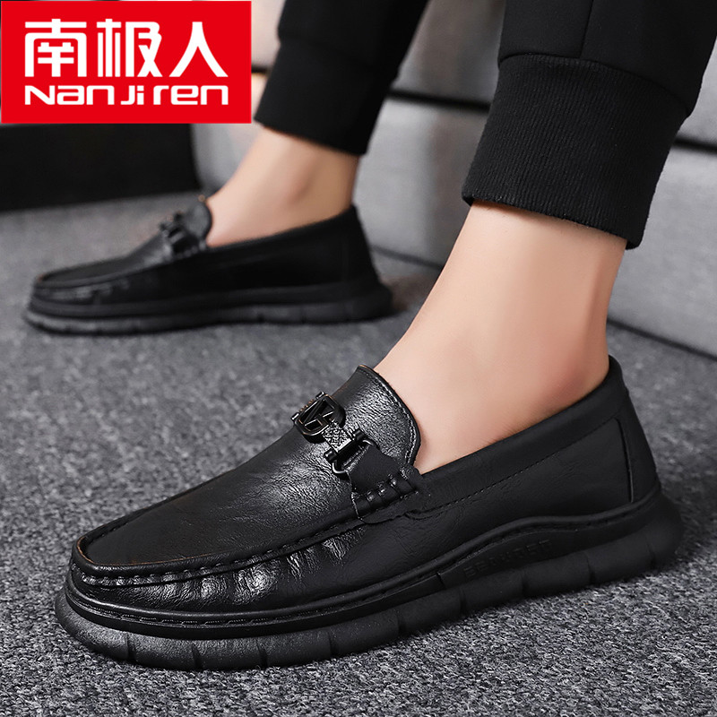 Antarctic People Summer Casual Leather Shoes Positive Dress Black Small Leather Shoes Men's Korean Version Trendy Waterproof Youth Office Suits