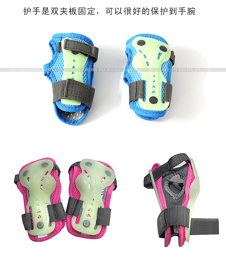 A pair of guardians (pink) one pair of guardians (blue) one pair of elbows (pink) one pair of elbows (blue) one pair of knee-guards (pink) one pair of knee-guards (blue) pink (six-piece) blue (six-piece) blue (six-piece)