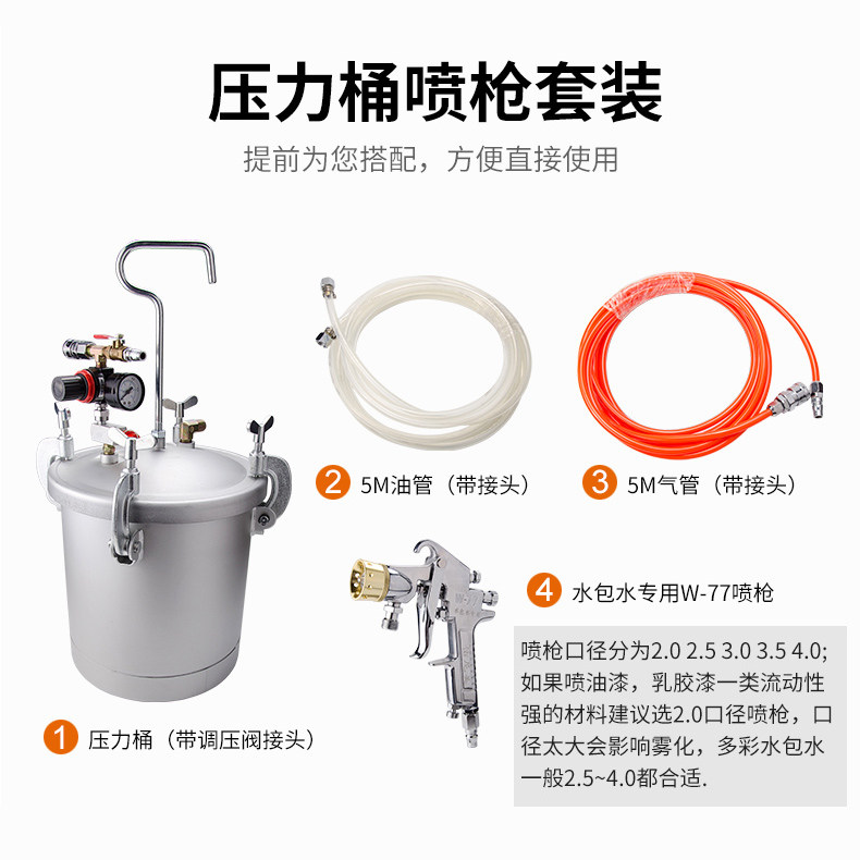2L water storage pressure bucket 3m gas pipe 3m oil pipe 2L water storage pressure bucket PT871 colorful spray gun complete set 2L water storage pressure bucket Unimi W77 colorful spray gun complete set 5L water storage pressure