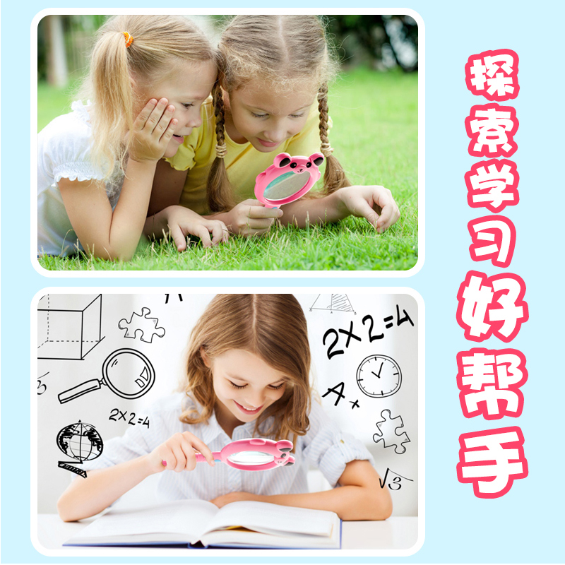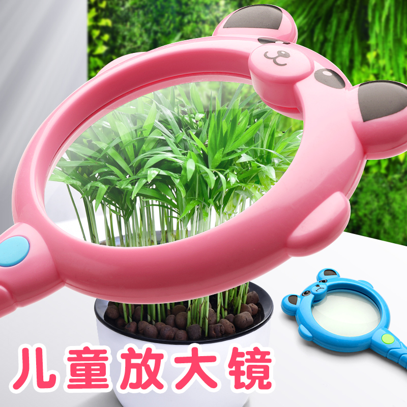 Children's magnifying glass handheld magnifying glass cartoon modeling science kindergarten HD cute toy baby primary school students with portable plant observation magnifying glass anti-fall child diameter 60mm