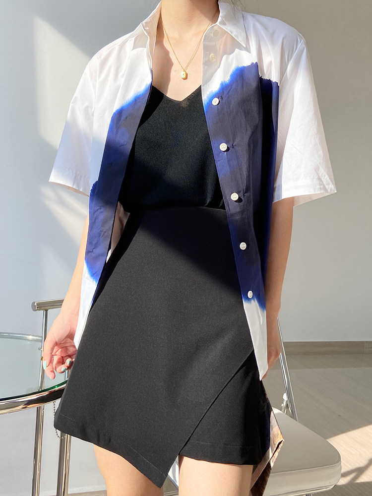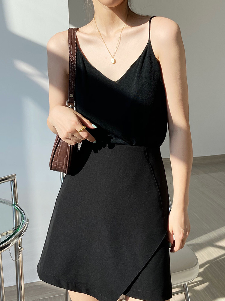 HUILIULIU sexy black slit skirt women's summer slimming irregular a-line skirt bag hip short skirt mid-length