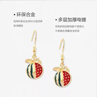 Watermelon fruit earrings female design sense niche earrings ear hook earrings personality wild metal color simple small fresh