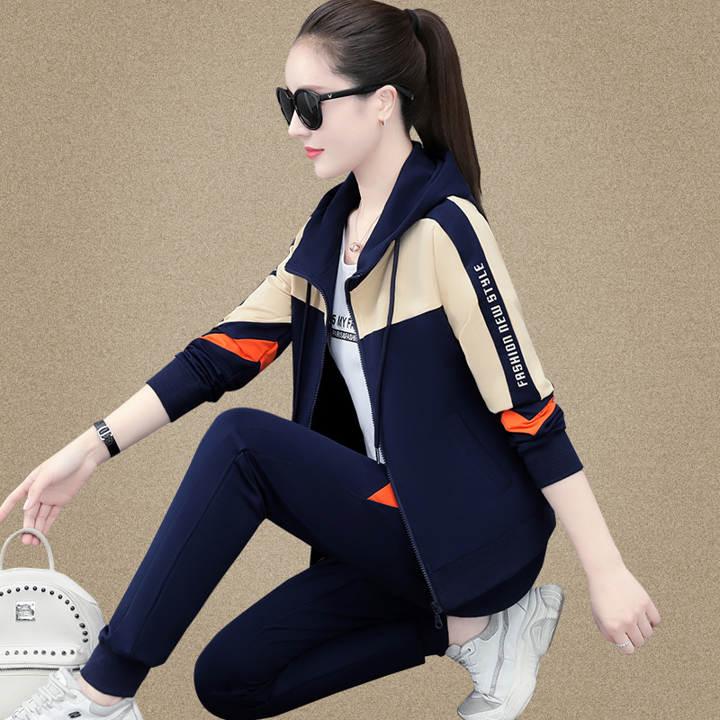 Casual Sports Suit Women Spring Autumn 2022 New Middle Aged Lady With Cap Jacket Long Sleeve Loose Sweatshirt Three Sets