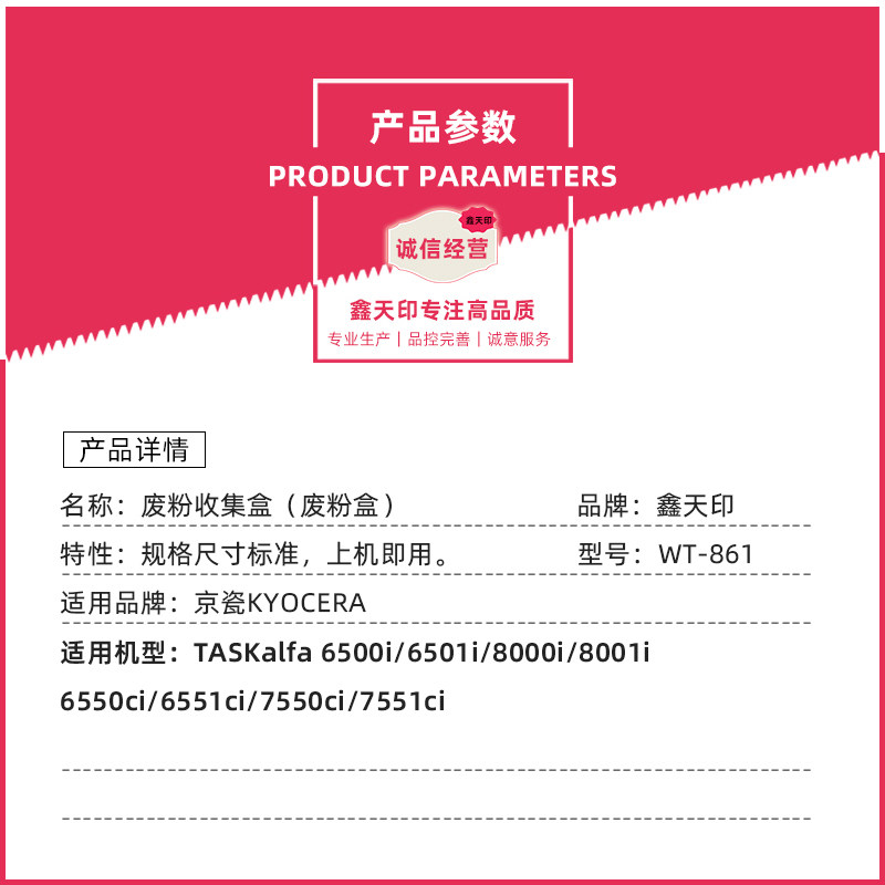 Xin Tianyin applies Kyocera WT-861 waste powder box TAKalfa 6500i 6501i 6501i 8001i 8001i waste toner collection box 6550ci