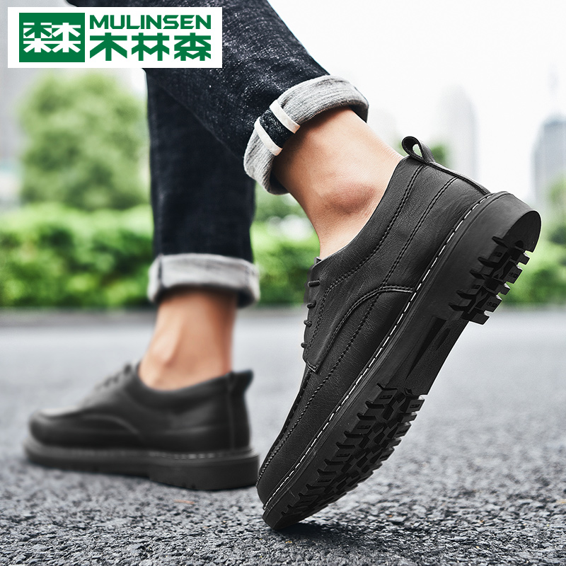 Wood Linson Casual Leather Shoes Men's Summer Breathable 100 Hitch Soft Base Men Heightening Business Positive Dress Clock Leather Shoes
