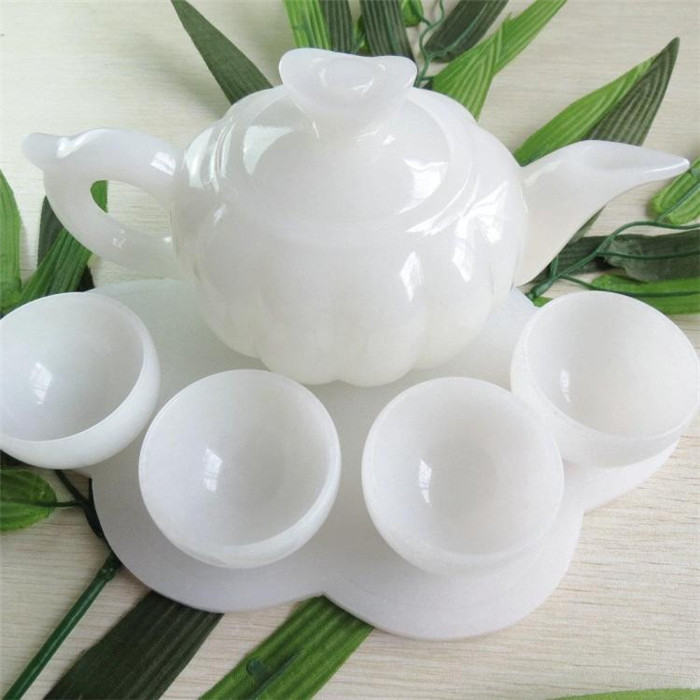 Afghanistan Natural White Jade Kongfu Tea Wine Furniture Group Suite Creative Home Decoration Jade Jade Pendulum Pieces Living-room Wine Cabinet