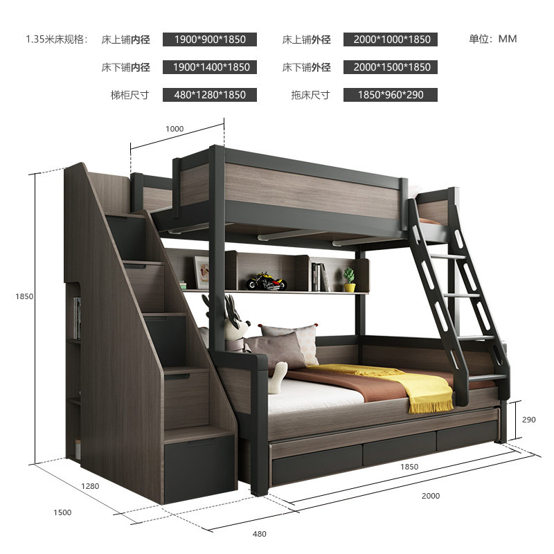 Upper and lower bed (delivery bookcase) solid wood frame structure upper and lower bed dragging bed (delivery bookcase) solid wood frame structure upper and lower bed ladder cabinet (delivery shelf) solid wood frame structure