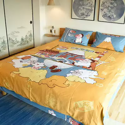 (Toyama Strawberry) Japanese luck rising Wangwang cartoon four-piece cotton cotton two-dimensional quilt cover