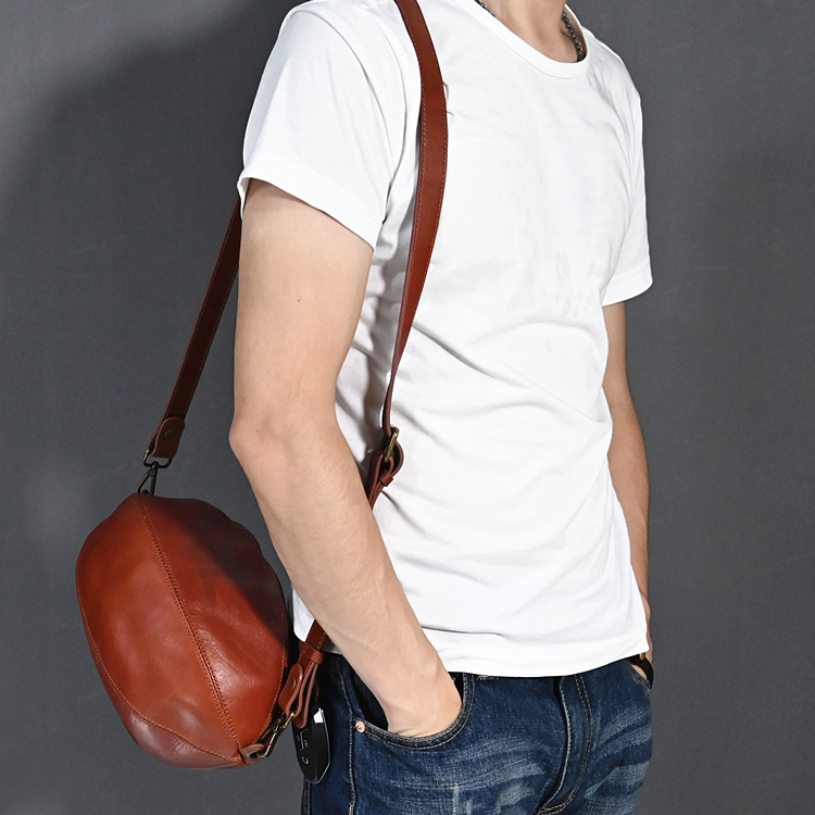 New Pint Day Series Small Crowdtrend Men And Women Neutral Olive-Shaped Head Layer Bull Leather Locomotive Single Shoulder Crushing Genuine Leather Leather Bag
