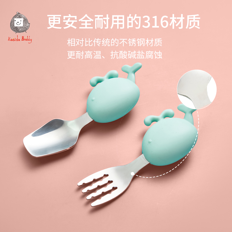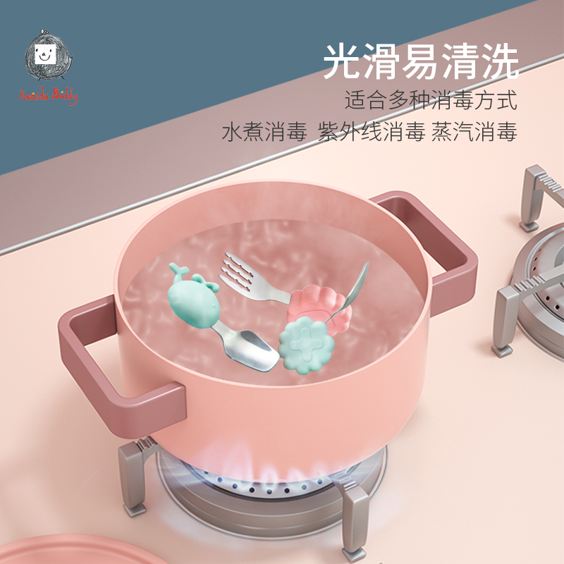 Small Chicken Cardi Baby School Eating Spoon Short Handle Children Stainless Steel Fork Spoon Vice Food Children Cutlery Training Fork Spoon