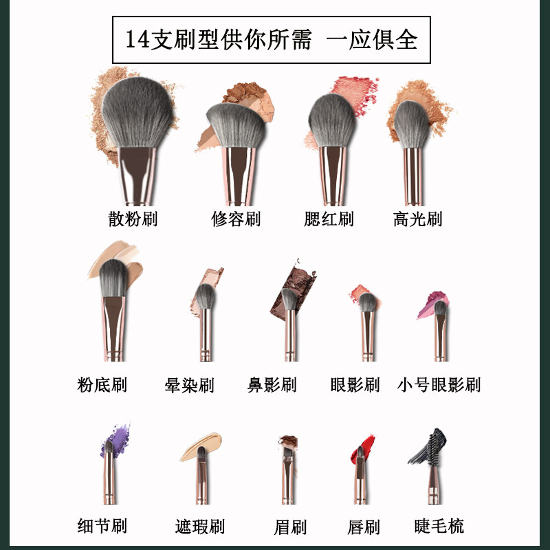 FEE COOL Ink Deb 14 Makeup Brush Set Group Beginners Canton Eye Shadow Brush Ultra Soft Pink Bottom Brush Complete