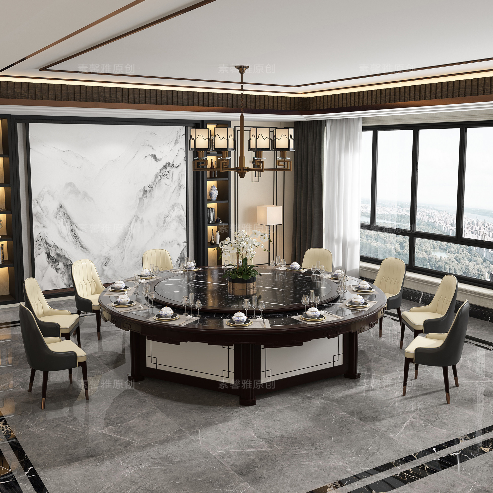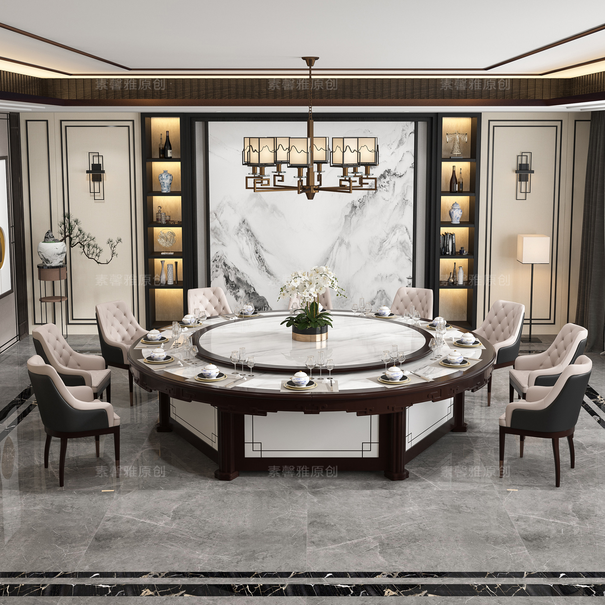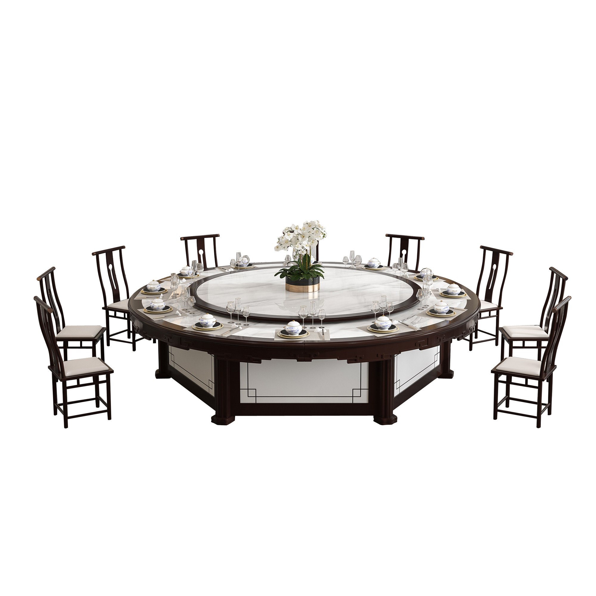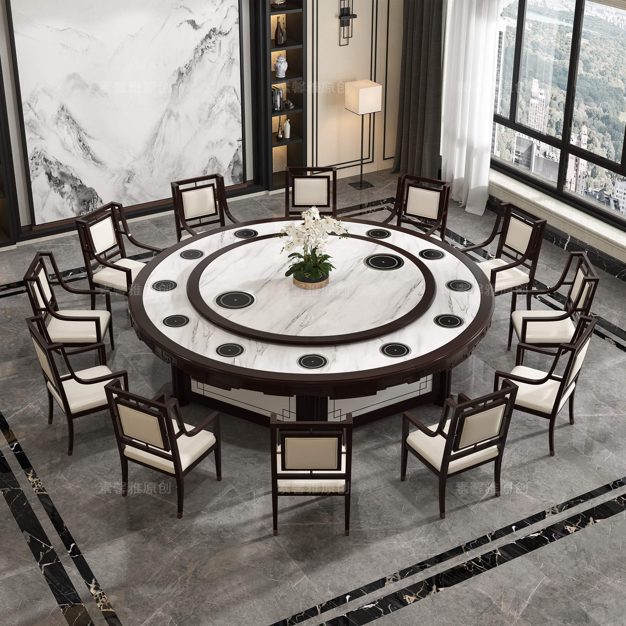 Hotel dining table electric large round table automatic rotating turntable marble new Chinese hot pot table 10 people 15 people 20 people