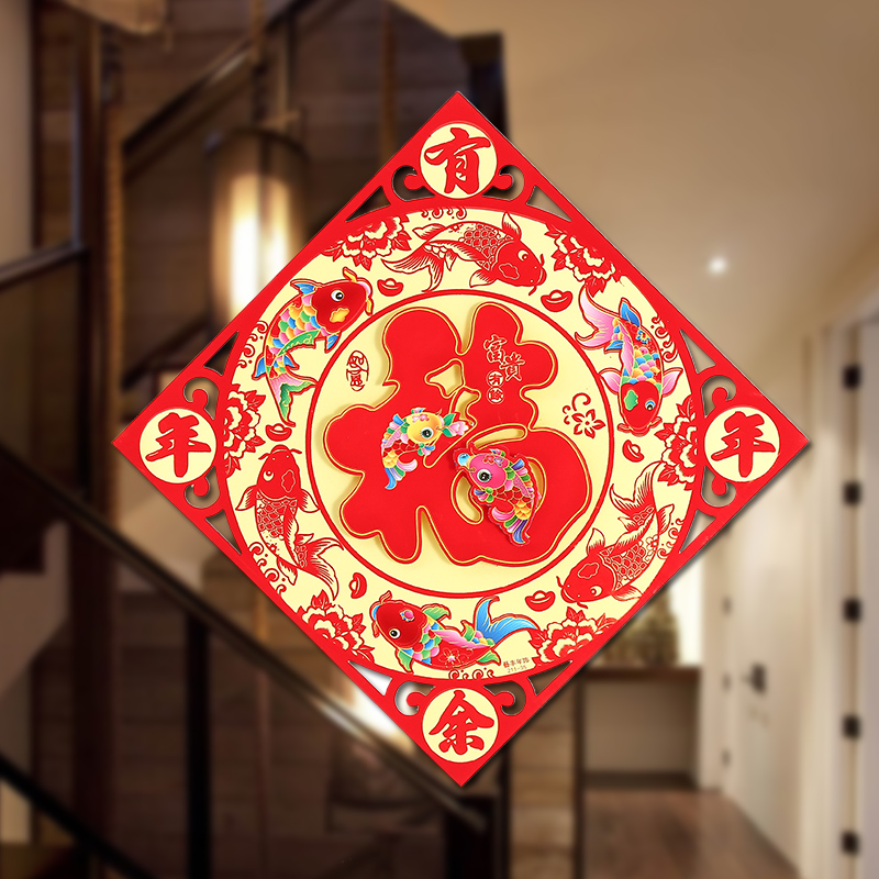 Multi-treasure fish stereo fofu rich and rich in three-dimensional foe apple Cubism Three-dimensional Fu-Fu Wufu Wufu Three-dimensional Fu Firecrackers Three-dimensional Blessing Firecrackers Solid Golden Fu Lantern Three-dimensional Blessing and Festive Flowers and Solid Flowers