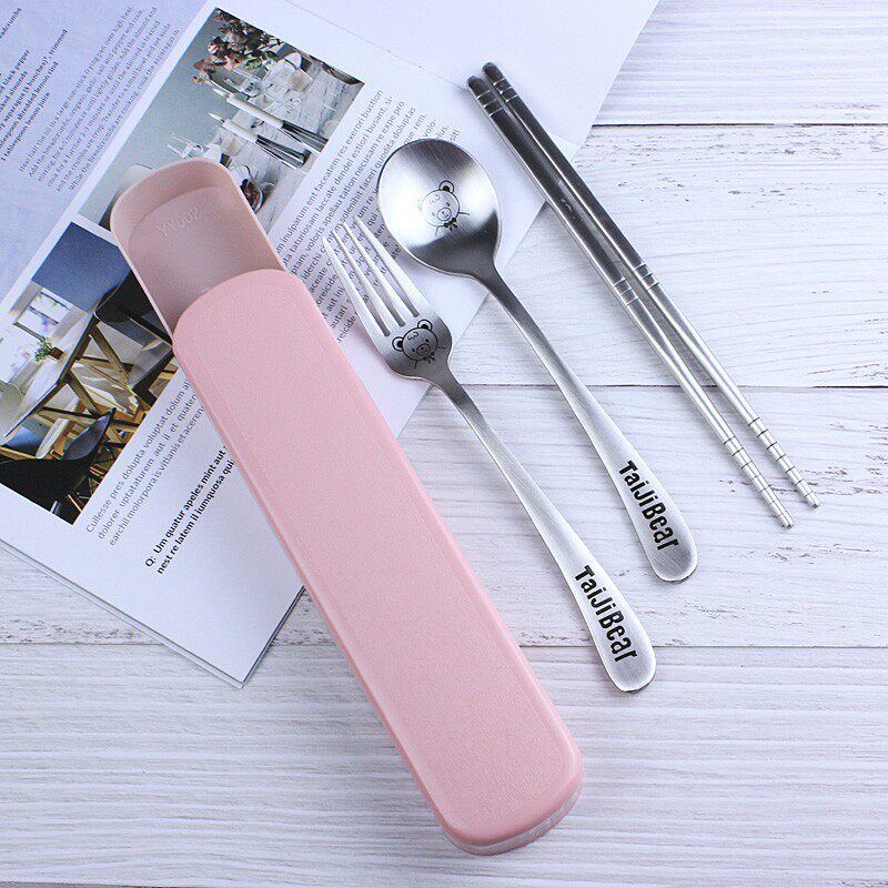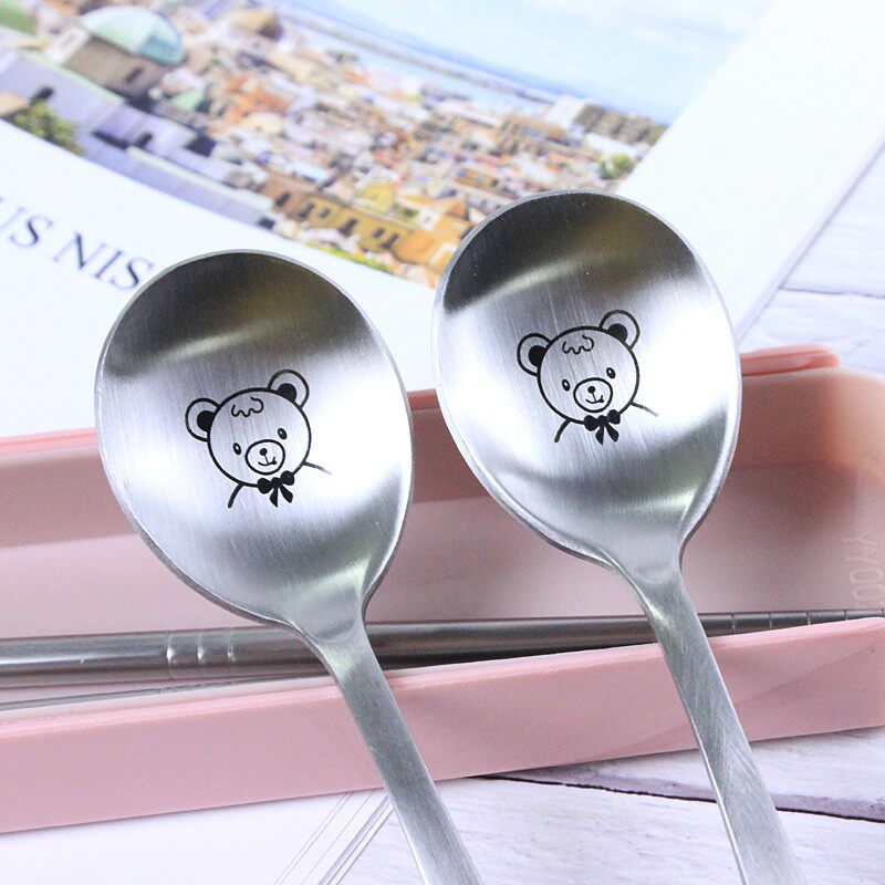 304 stainless steel chopsticks spoon cute cutlery anti-slip combination to work travel portable student cutlery boxed