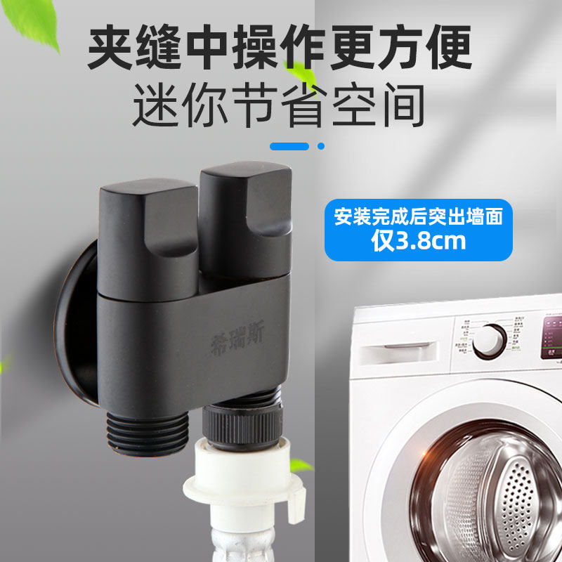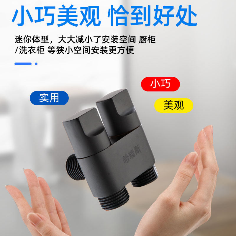 Black special short triangular valve in one-in-two-out tap double slitting water valve 10%-2 washing machine double water outlet valve switch