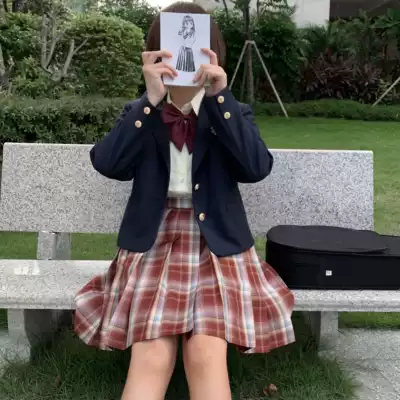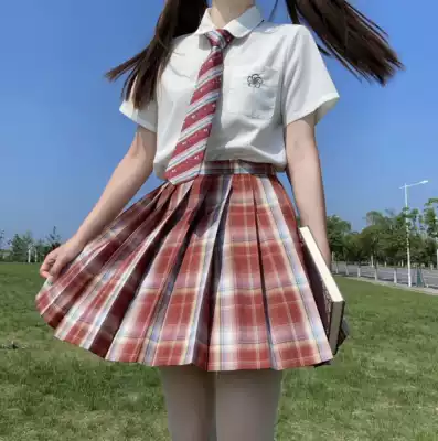 Kasuga (goldfish floating dream) spot red original grid skirt jk uniform Orthodox girl skirt pleated