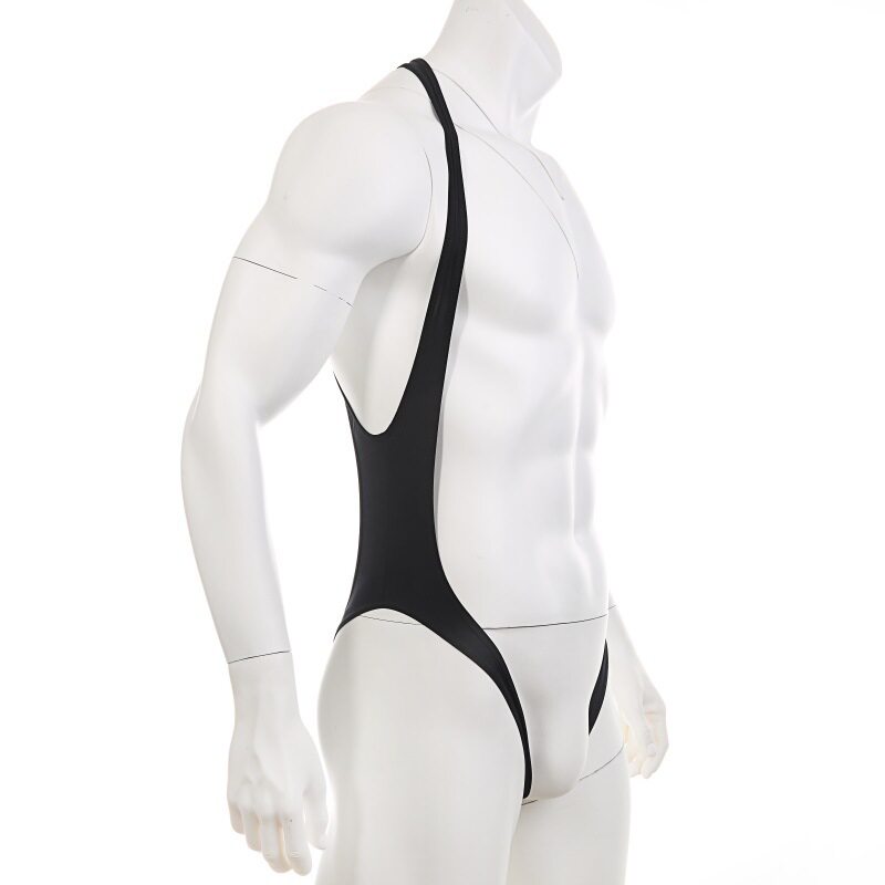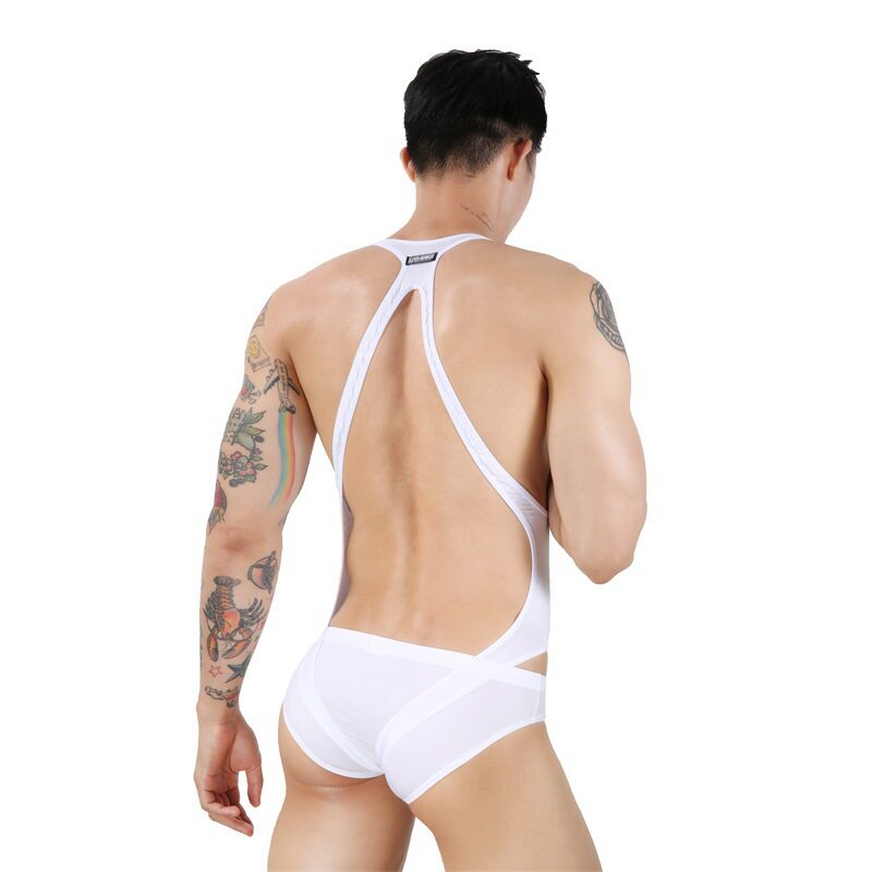 Men's see-through ice silk jumpsuit hip - exposing one-piece appeal tights underwear men's high elastic jumpsuit