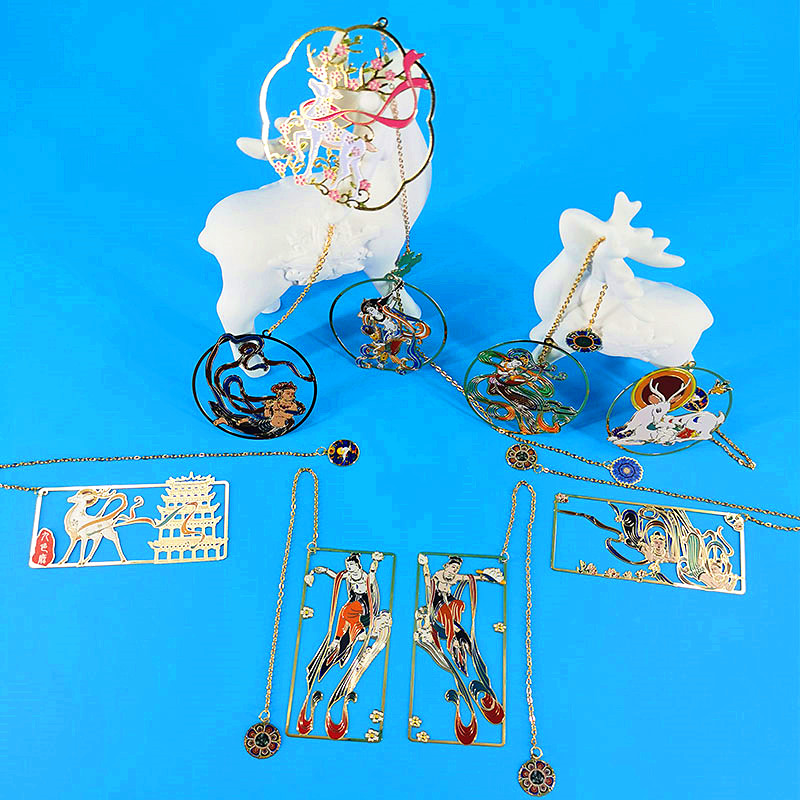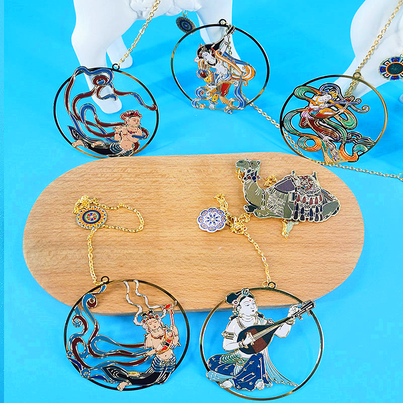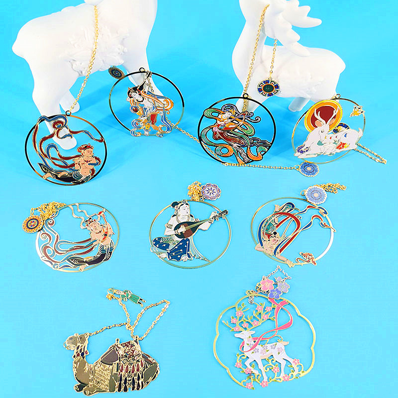 Gansu Dunhuang Mural Tourism Souvenir Bookmark Metal Hollowed-out Nine Color Deer Flying Heavenly Companion Gift for Children's Gift