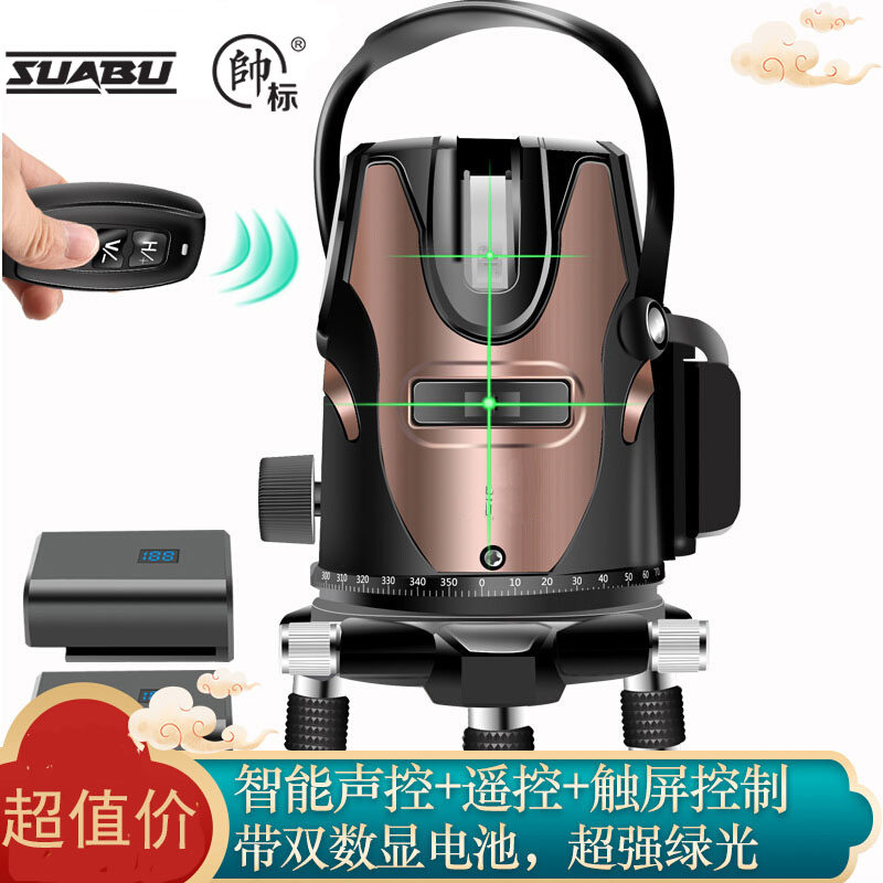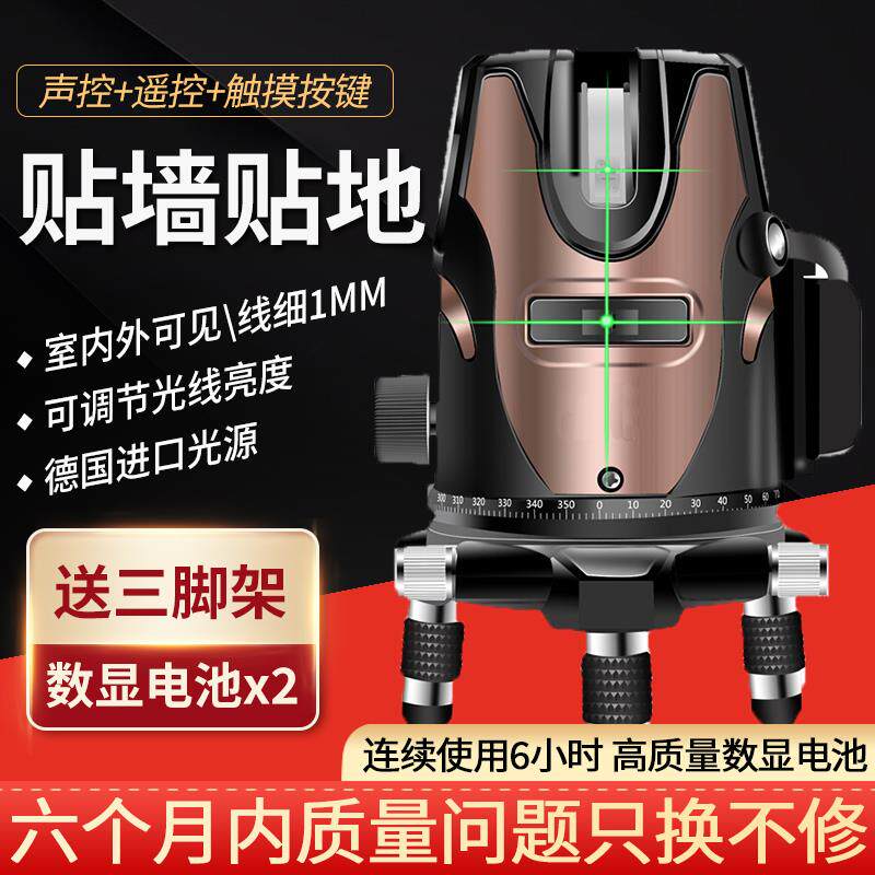 Handsome standard infrared level meter green light high-precision strong light thin line intelligent voice-controlled remote control digital display five-line level meter