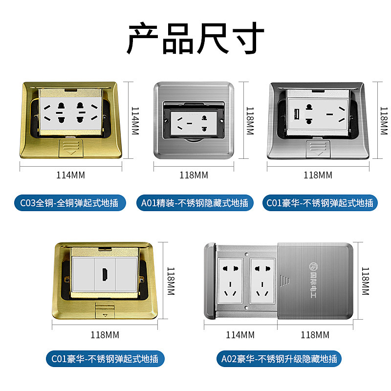 International Electrotechnical Electrotechnical All-copper embedded floor socket ultra-thin waterproof household floor floor network