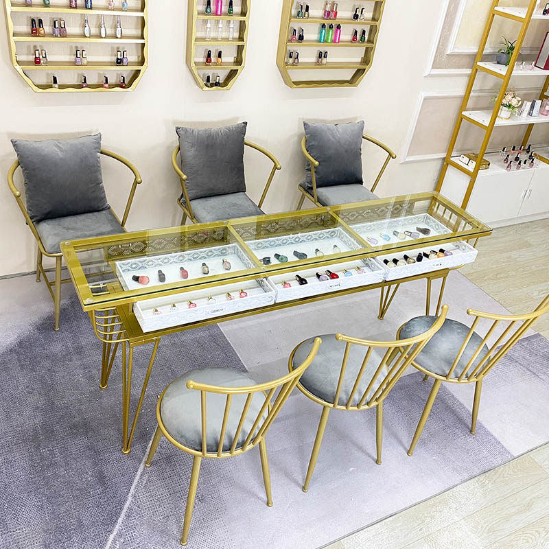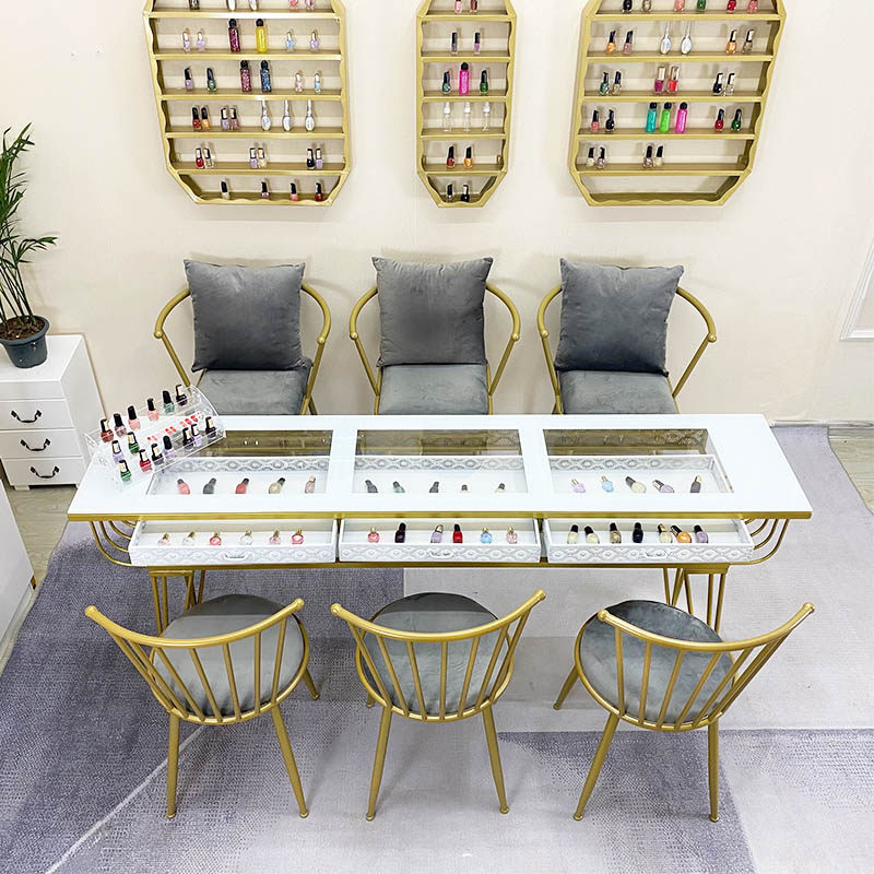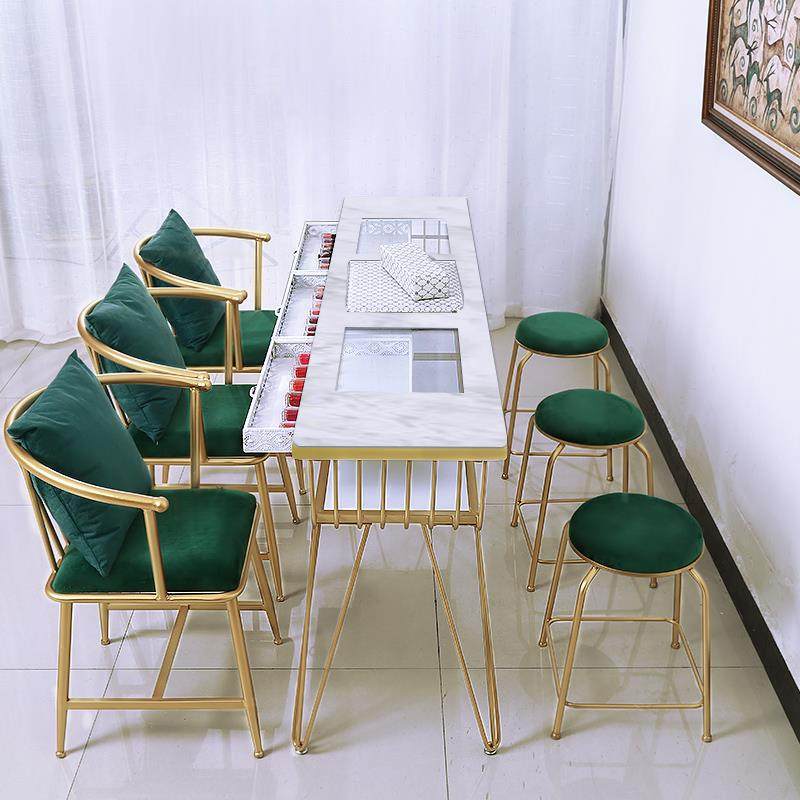 Nordic light luxury manicure table and chair set marble single-double economical net red double-layer manicure table glass chair