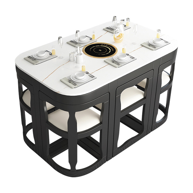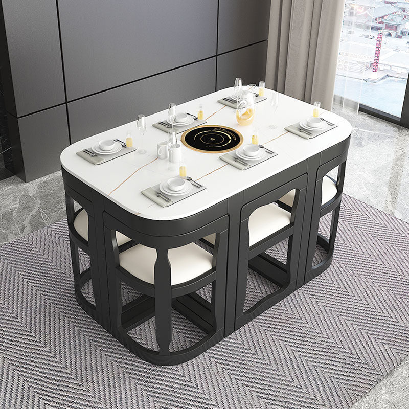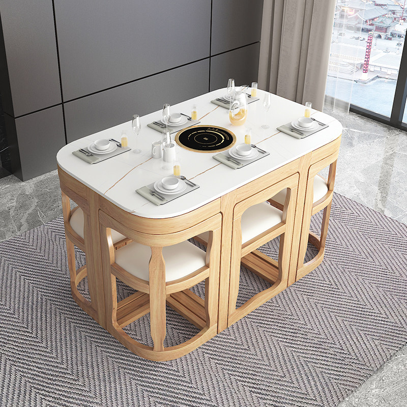 Solid Wood Rock Plate Table Nordic Home Small Household Type Modern Minima Dining Table Induction Cookers Invisible Marble Dining Table And Chairs