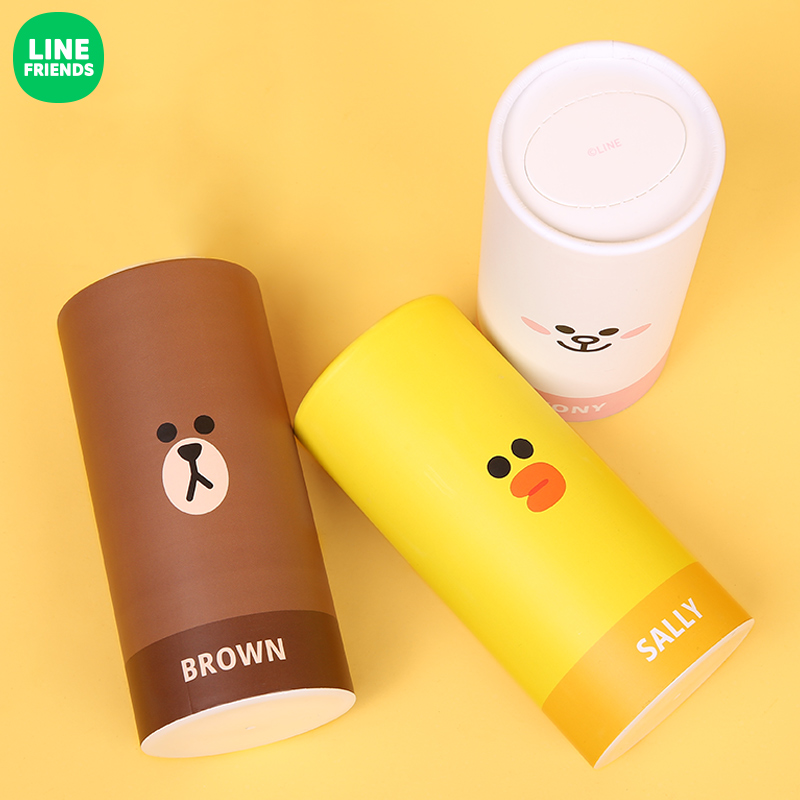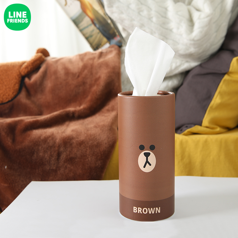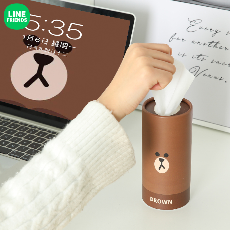 LINE Brown Bear Creative On-board Tissue Box Cartoon Cute Sanitary Paper Box With Paper Towel Cylinder Round Removable Sanitary Paper Cylinder