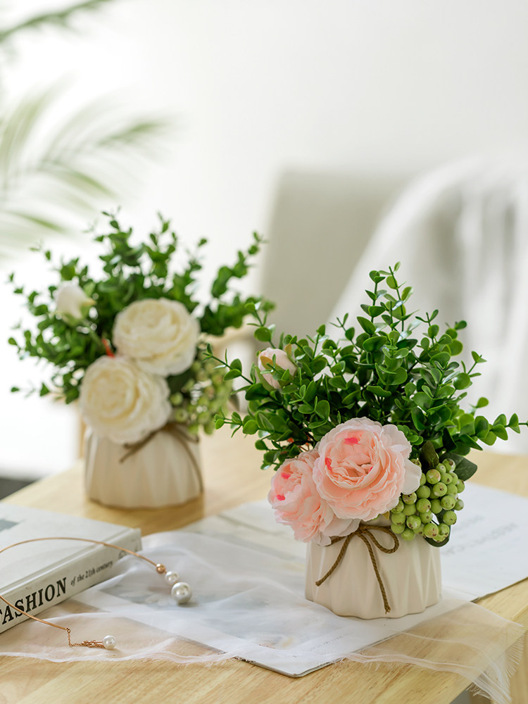 Pink Ceramic Vase Colorful Rose Pink Bouquet