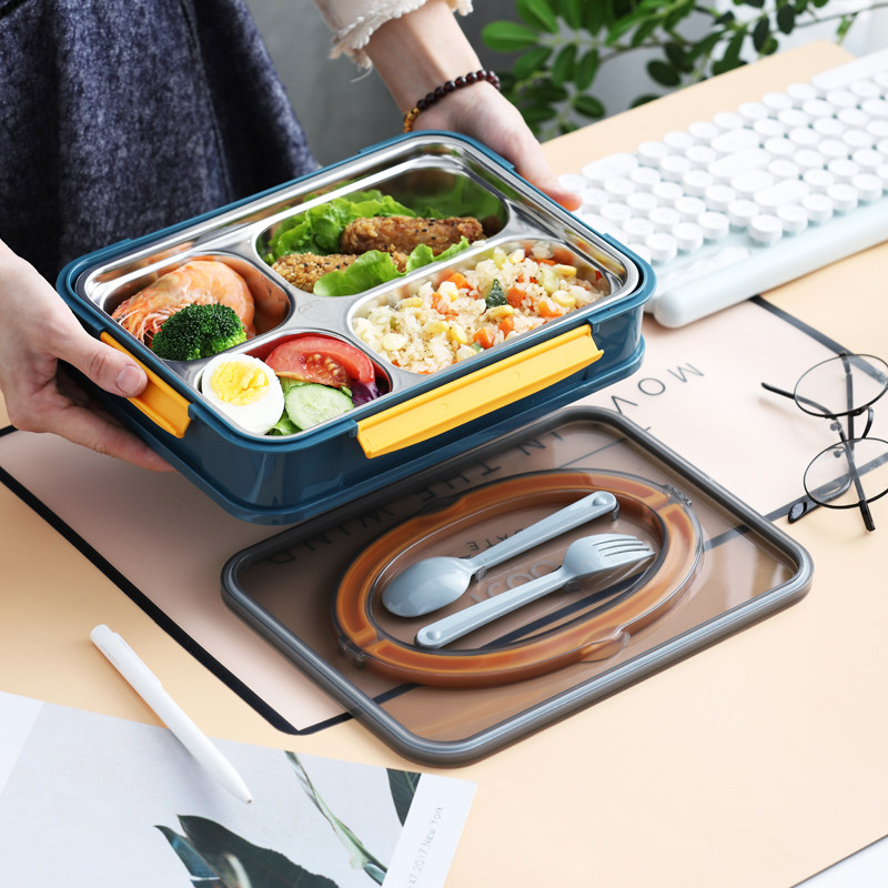 Stainless steel lunch box office worker insulation partition canteen with large capacity lunch box portable partition type student lunch box