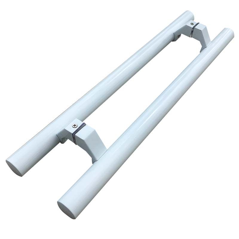 Thickened stainless steel dry powder white horseshoe foot handle wrapping glass framed door handle oblique turning foot side-mounted handle