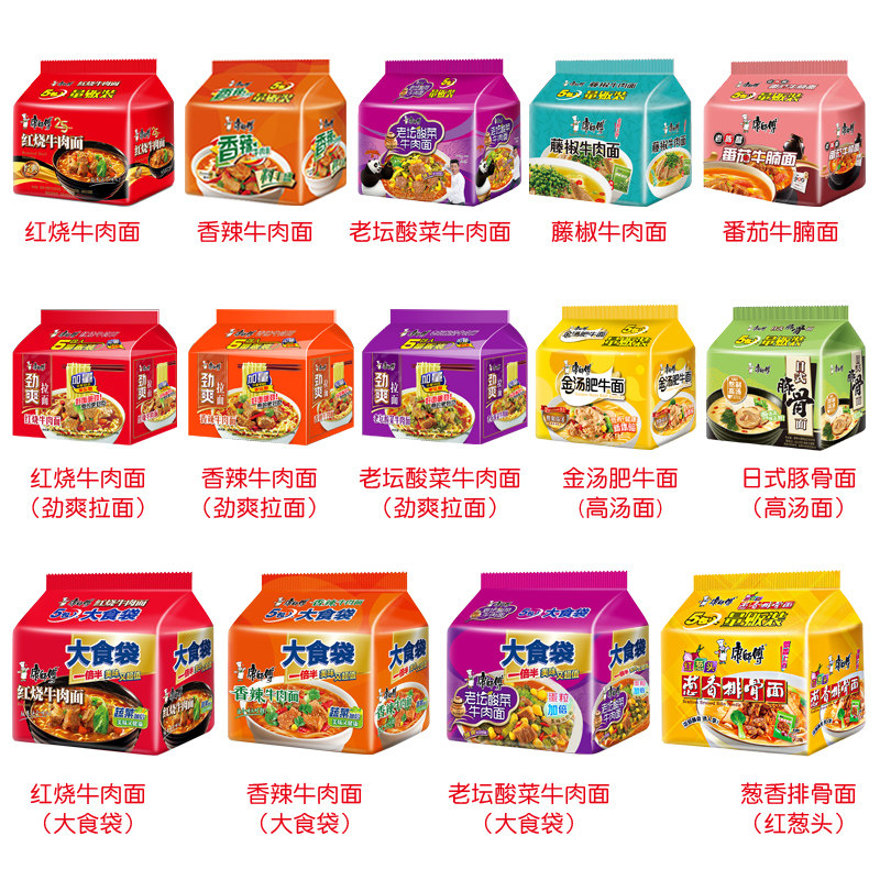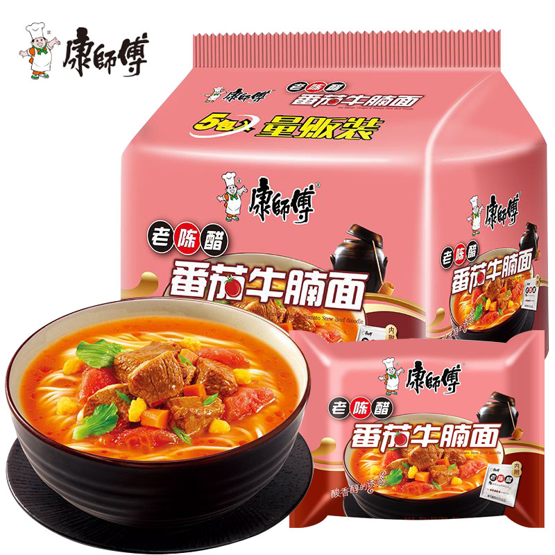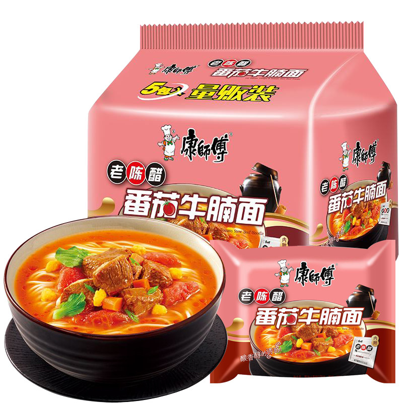 Master Kong instant noodles Tomato beef brisket noodles Instant noodles bagged five-in-a-row casual meal replacement Supper Hunger Fast food Ready-to-eat