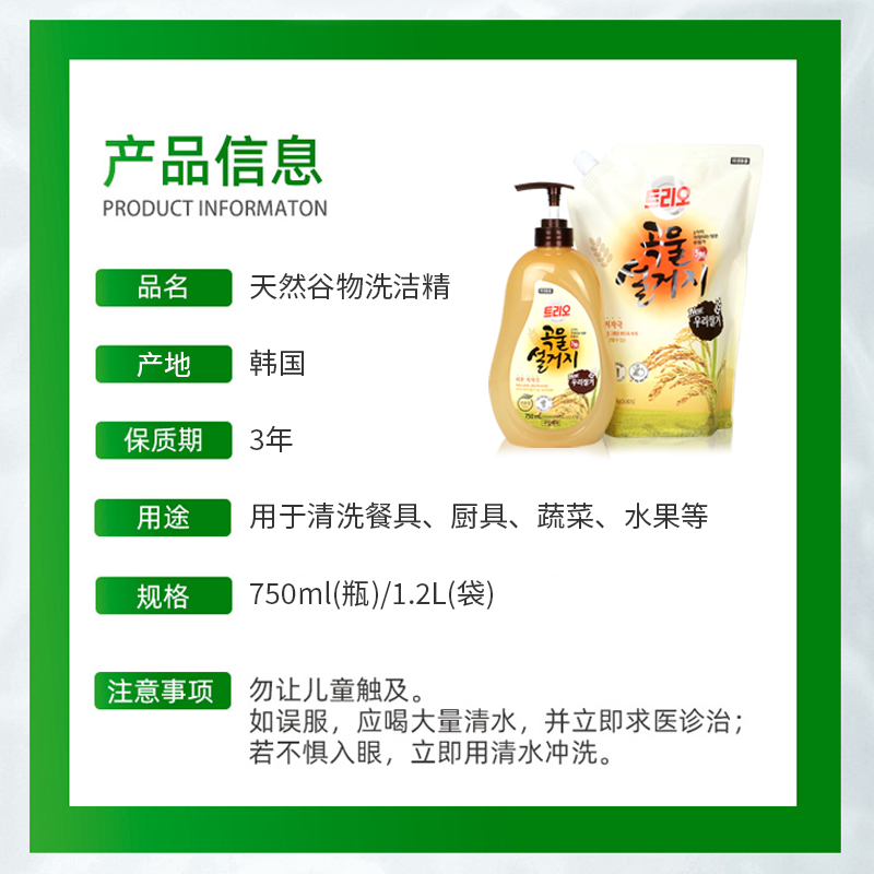South Korea imported detergent household kitchen fruit and vegetable tableware natural detergent bag small bottles do not hurt hands