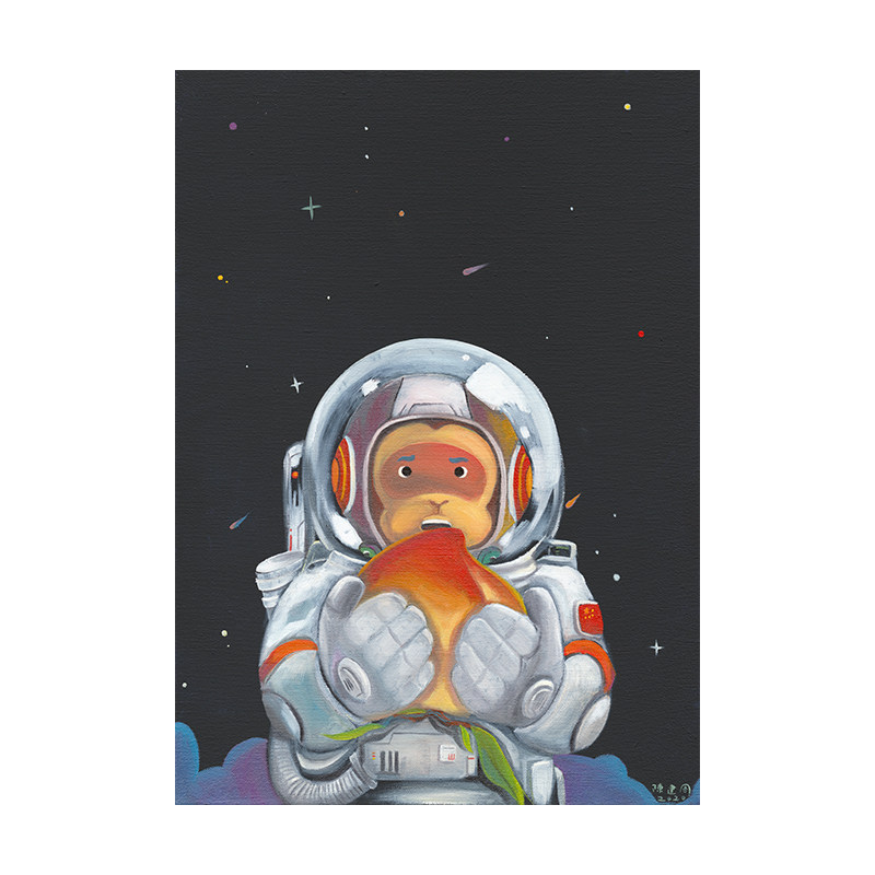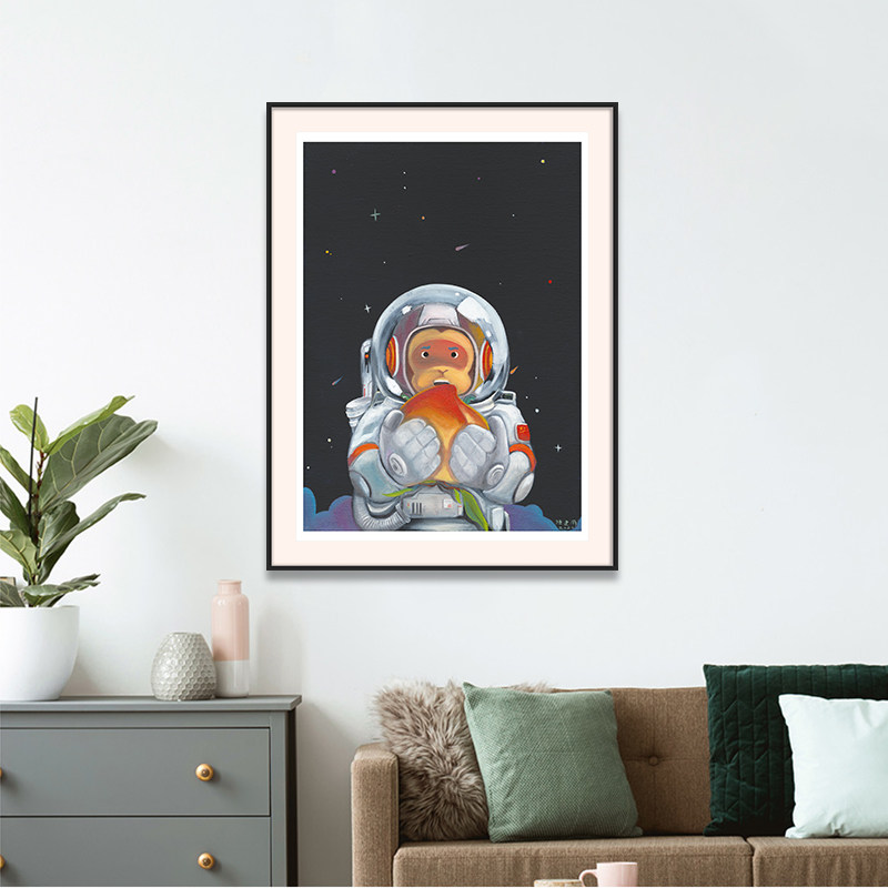 (199 edition) Chen Jianzhou "Astronaut and Big Peach" limited edition is hand signed and framed