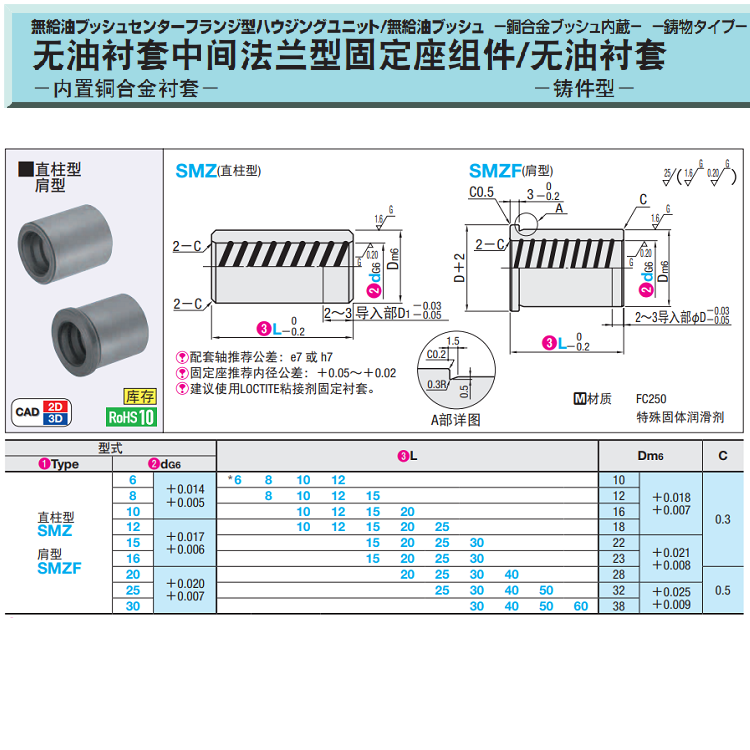 Oil-free bush straight post shoulder type SMZF6 8 10 12 12 20 20 25 30-8 10 10 -15 place of mithmi