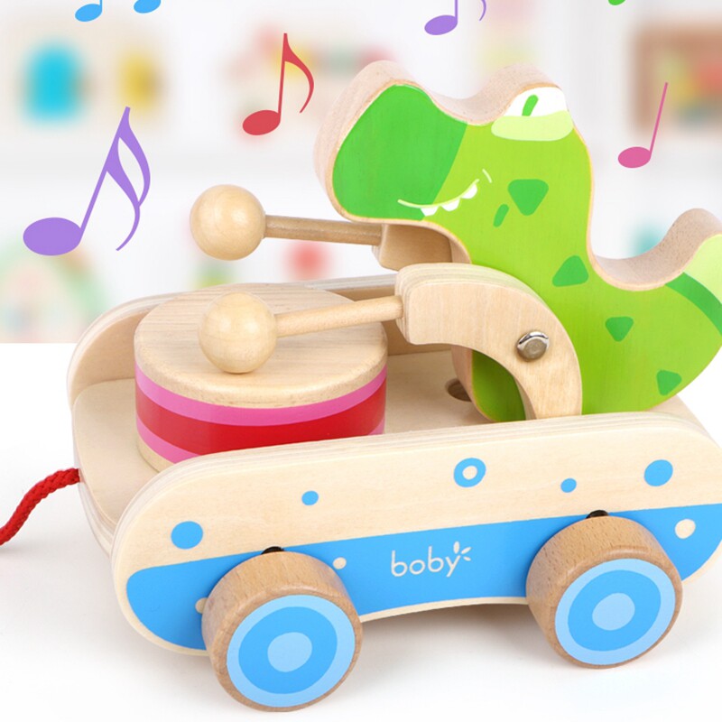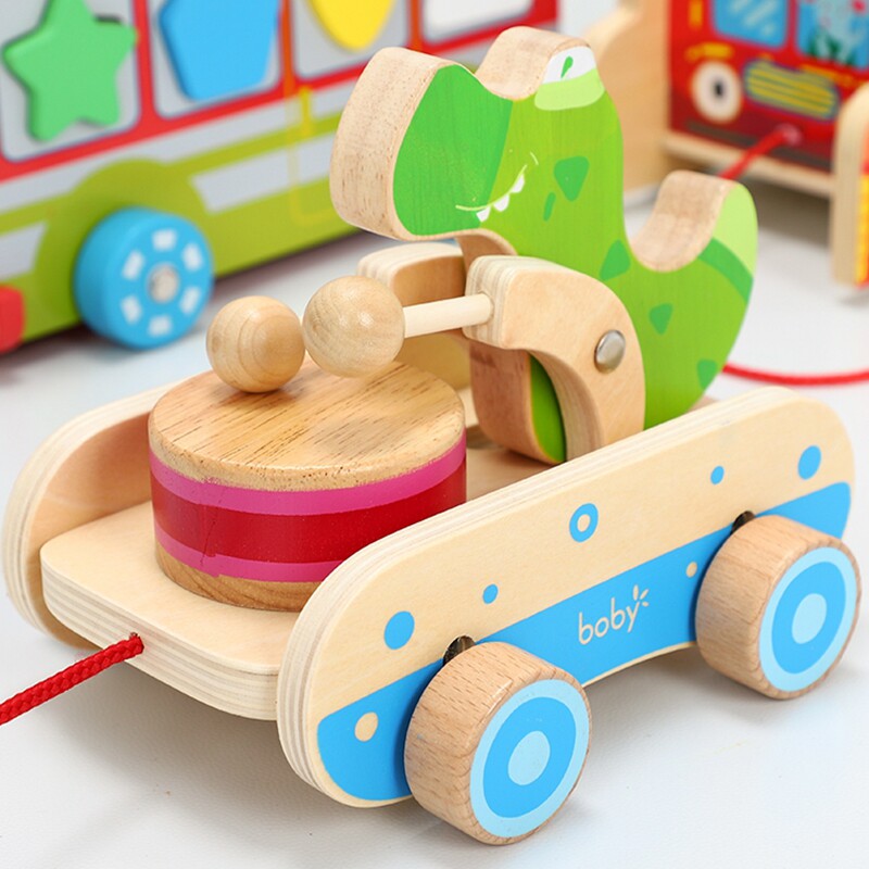 Boby baby drags toddler rope toy car crocodile drums wooden young children's traction will sound
