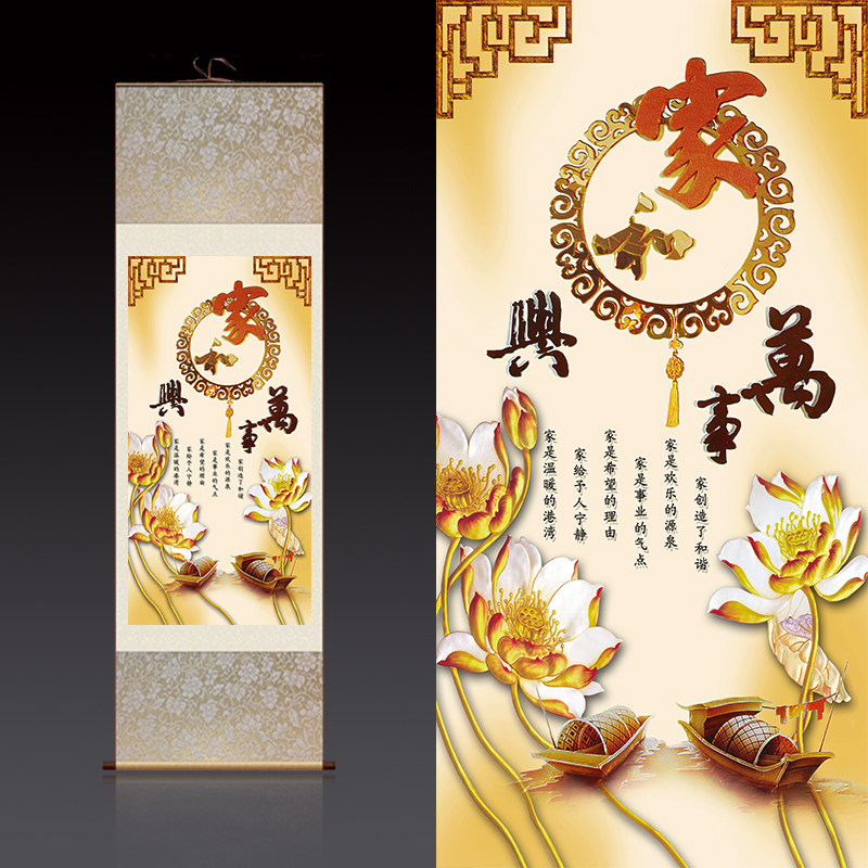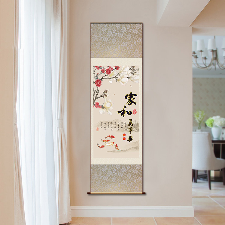 Home and Wanshixing living room decorative painting Study hanging painting flower blossom rich scroll painting sofa background Chinese mural painting