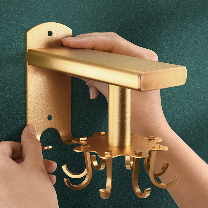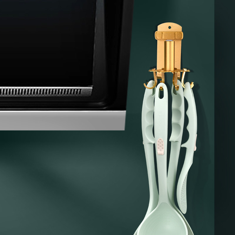 Punch-free kitchen rotary hook rack space aluminum shelf retractable spatula spoon kitchenware supplies storage rack