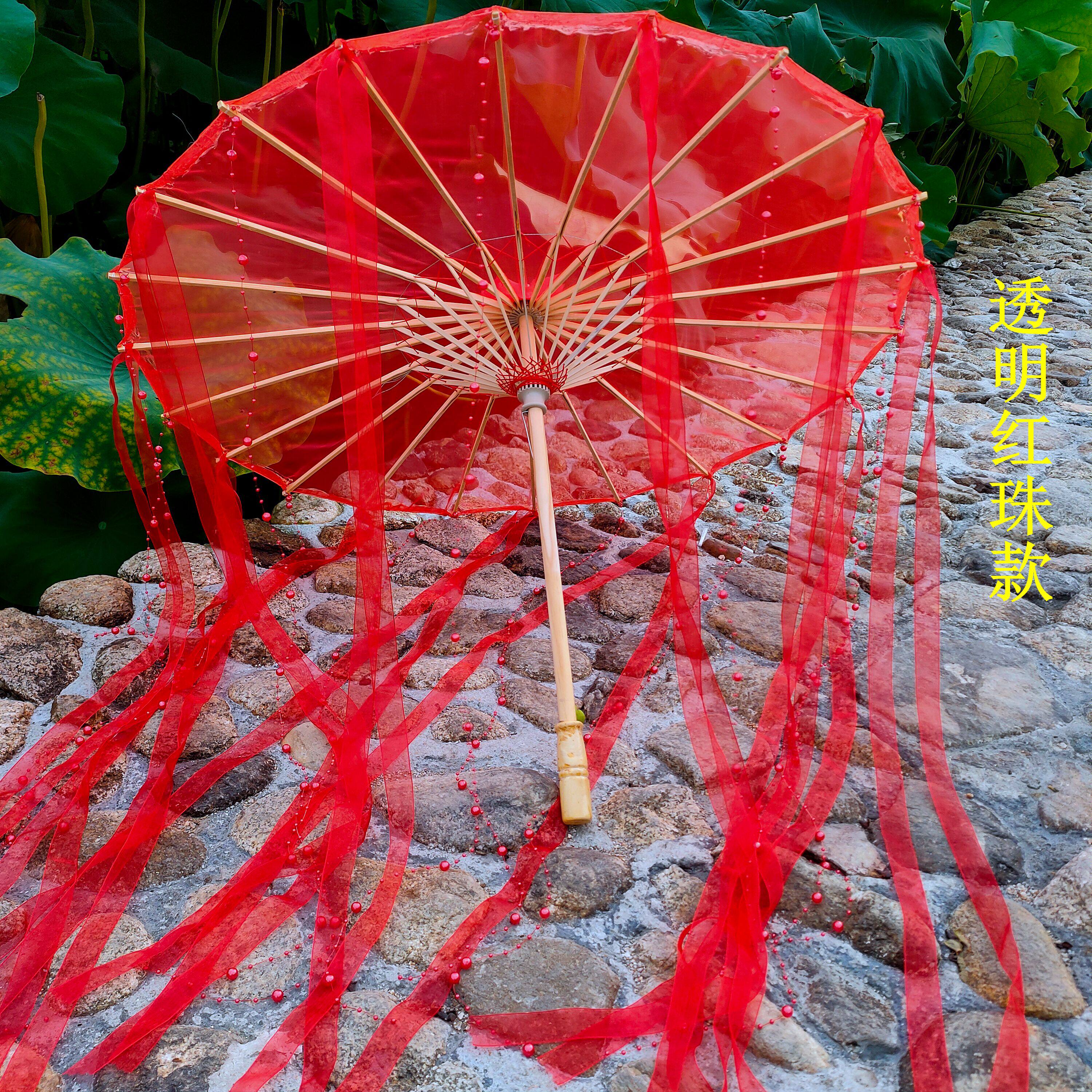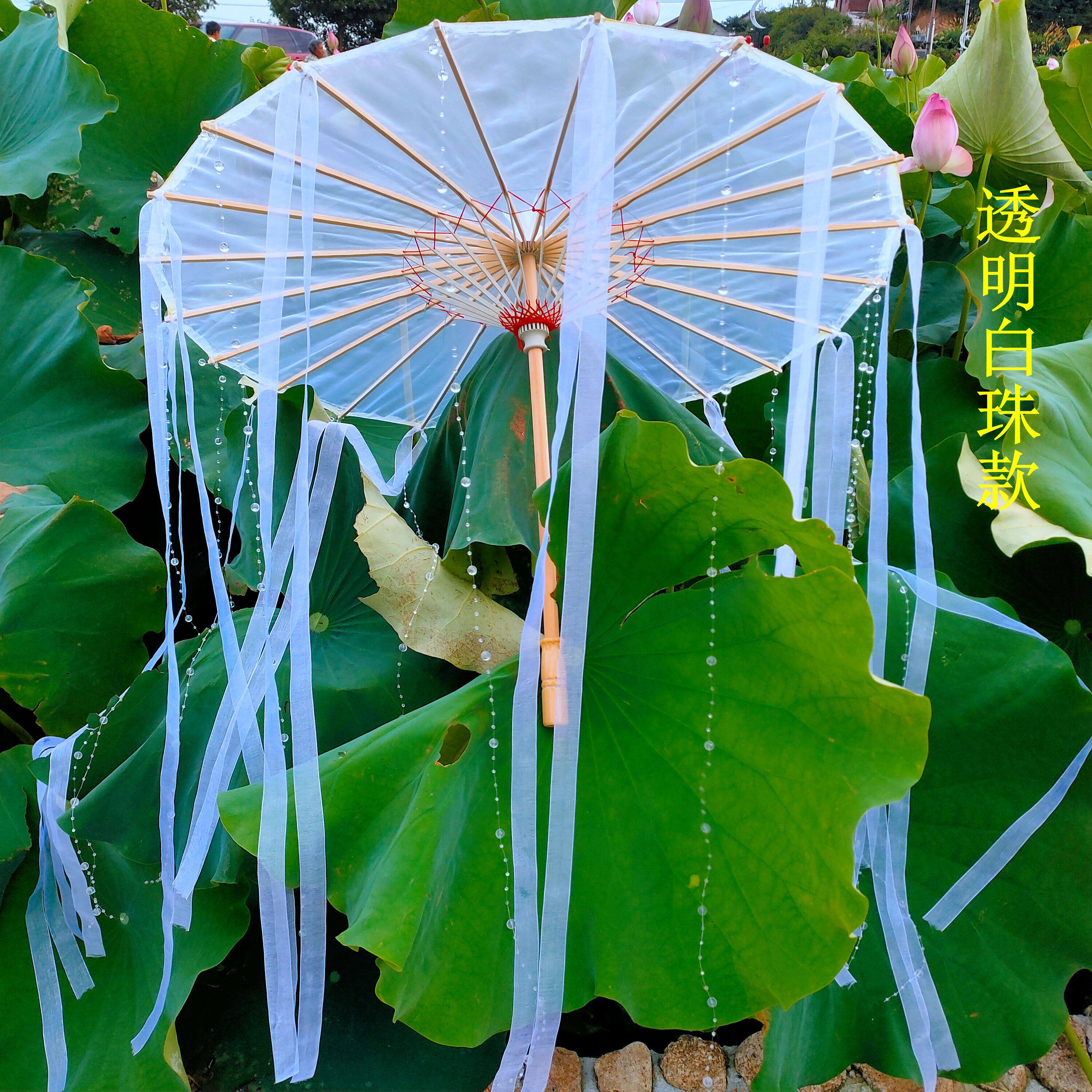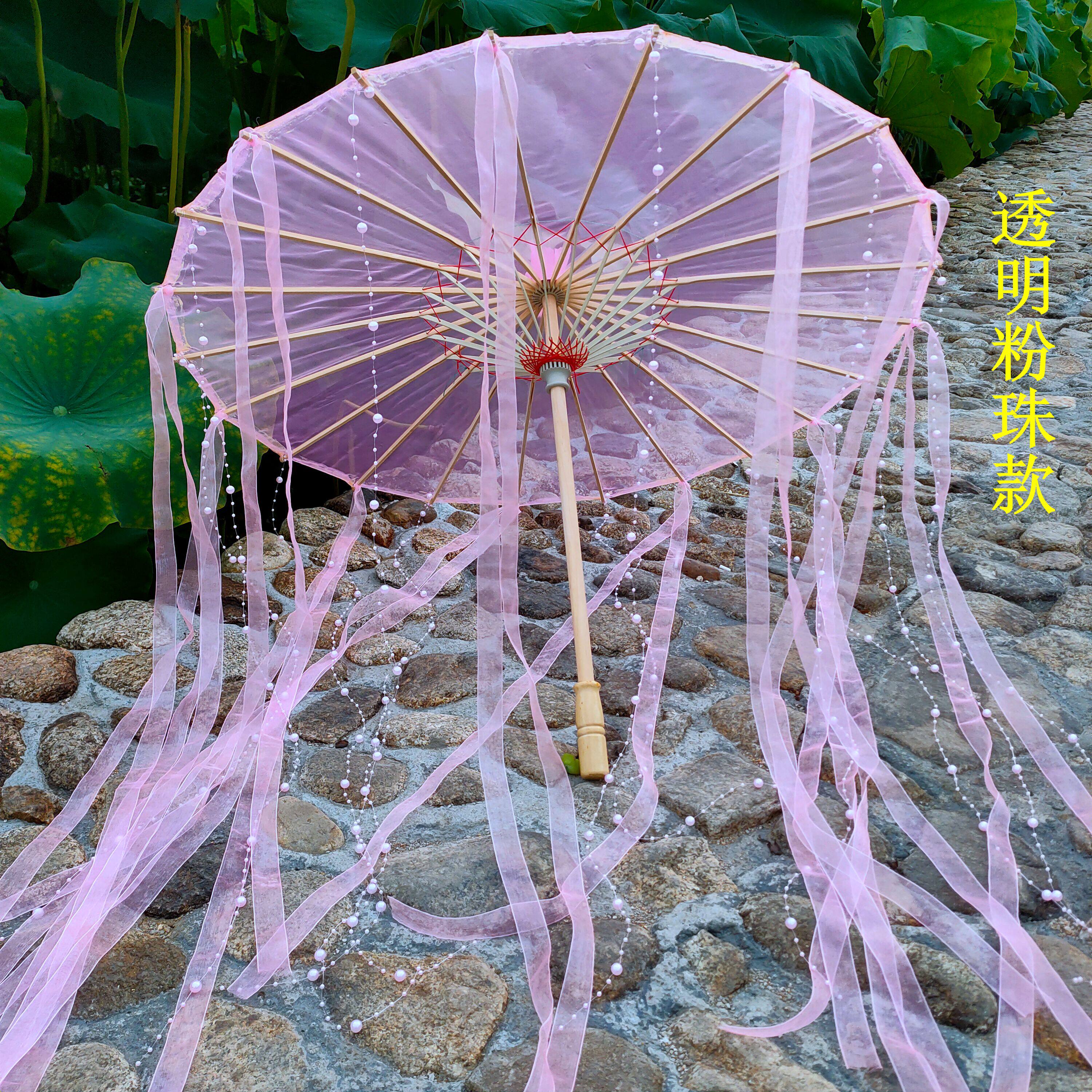 Tassel Umbrella Mermaid Tears Han Ancient Costume Umbrella Yarn Oil Paper Antique Streamer Other Side Flower Fairy Hanfu Chinese Style Net Red Bead Curtain
