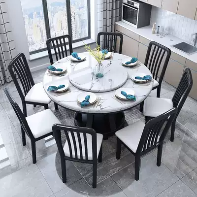 Marble dining table with turntable Modern simple light luxury dining table round household small apartment Nordic solid wood round table