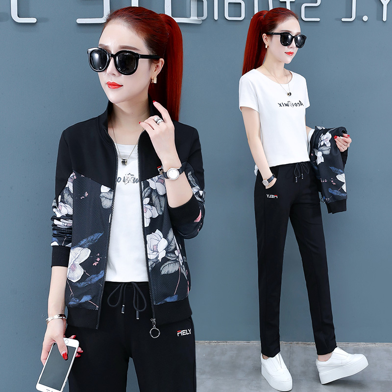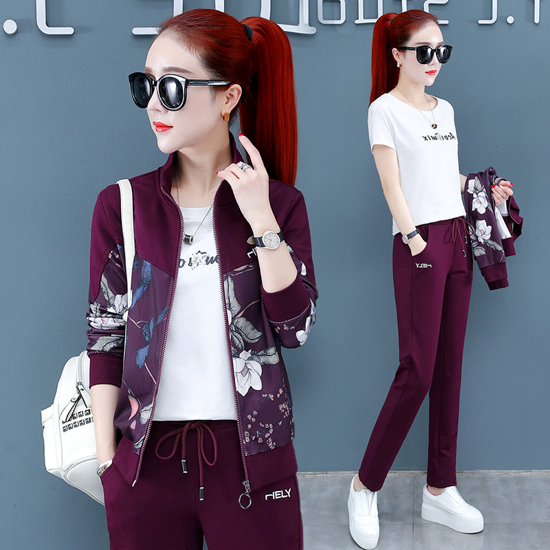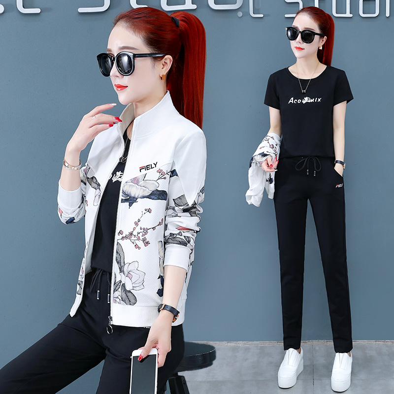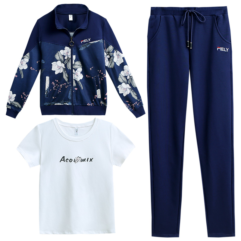 Sportswear Suit Woman Spring Autumn 2022 New Middle Aged Mother Foreign Pie Clothing Casual Blouse Jacket Three Sets Cotton